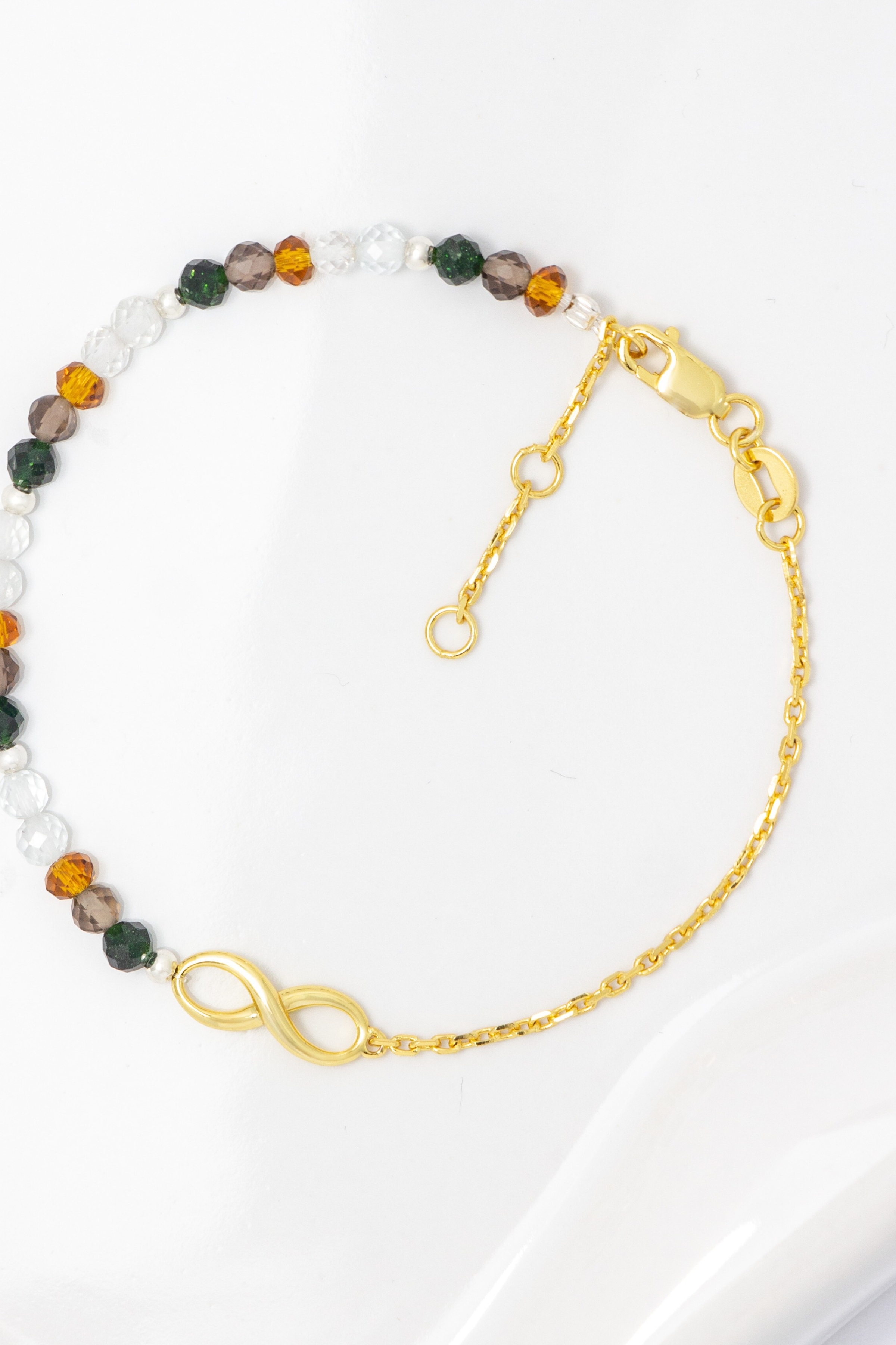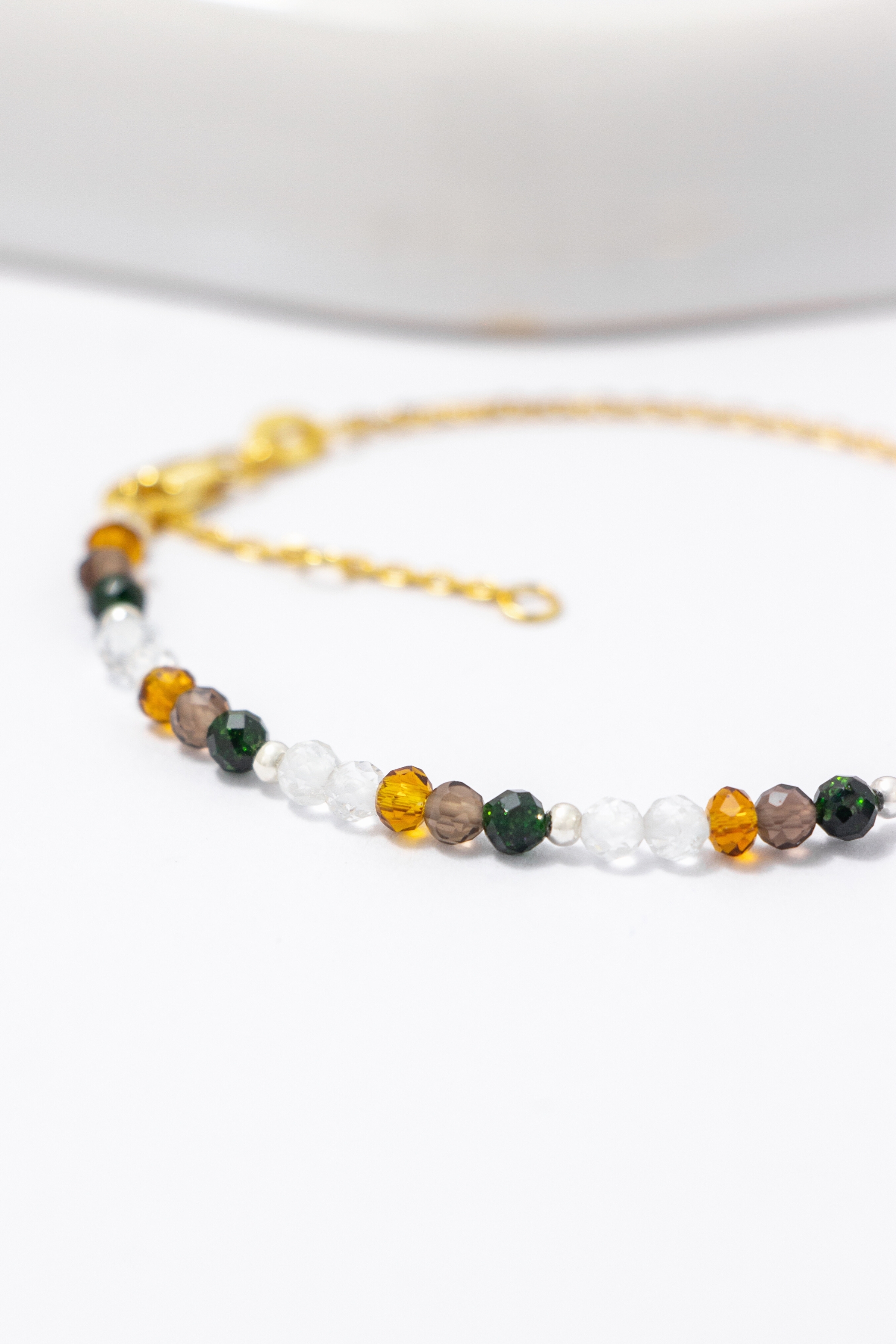 商品材質:白托帕石、綠砂石、茶晶、金黃鋯石、925純銀