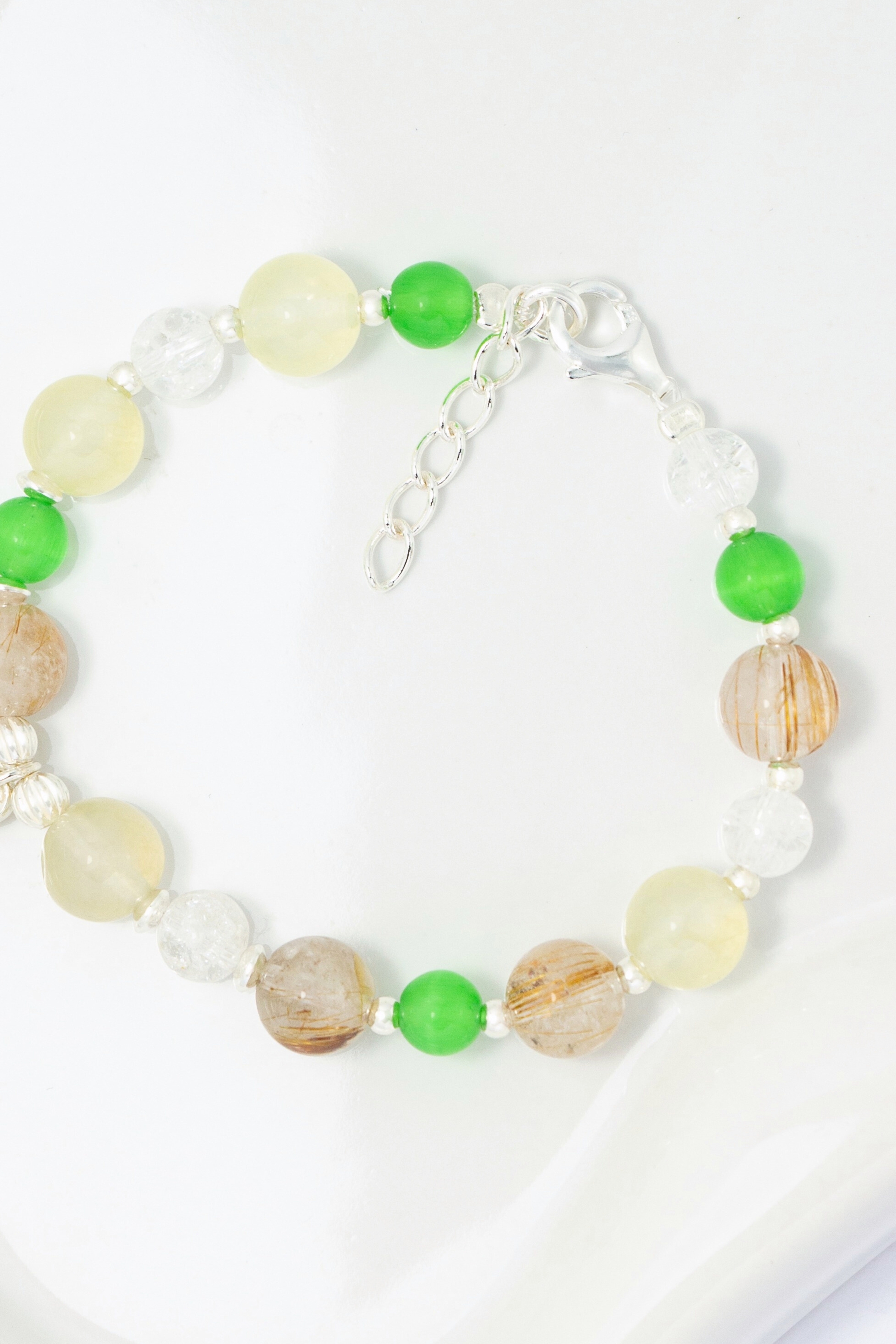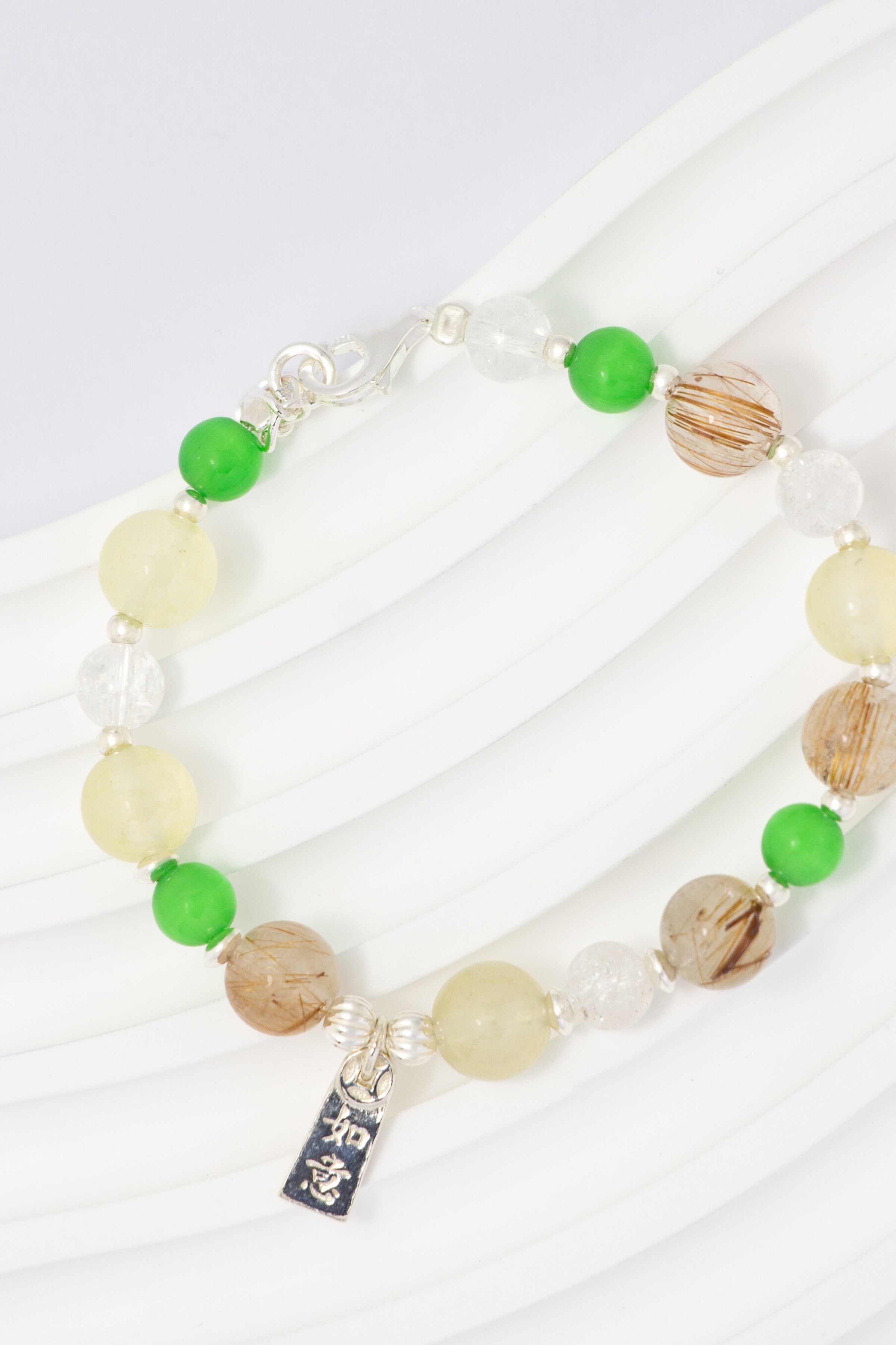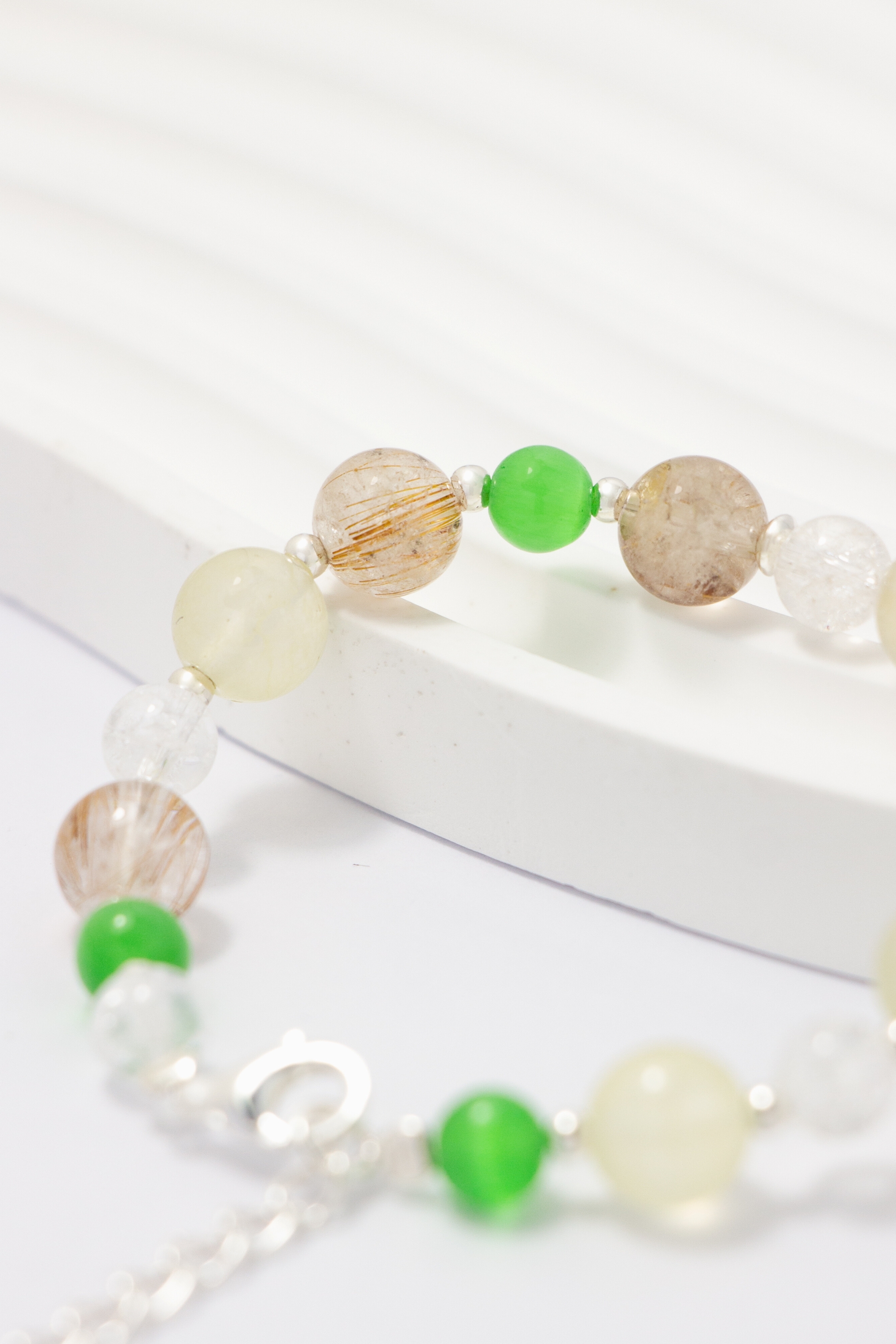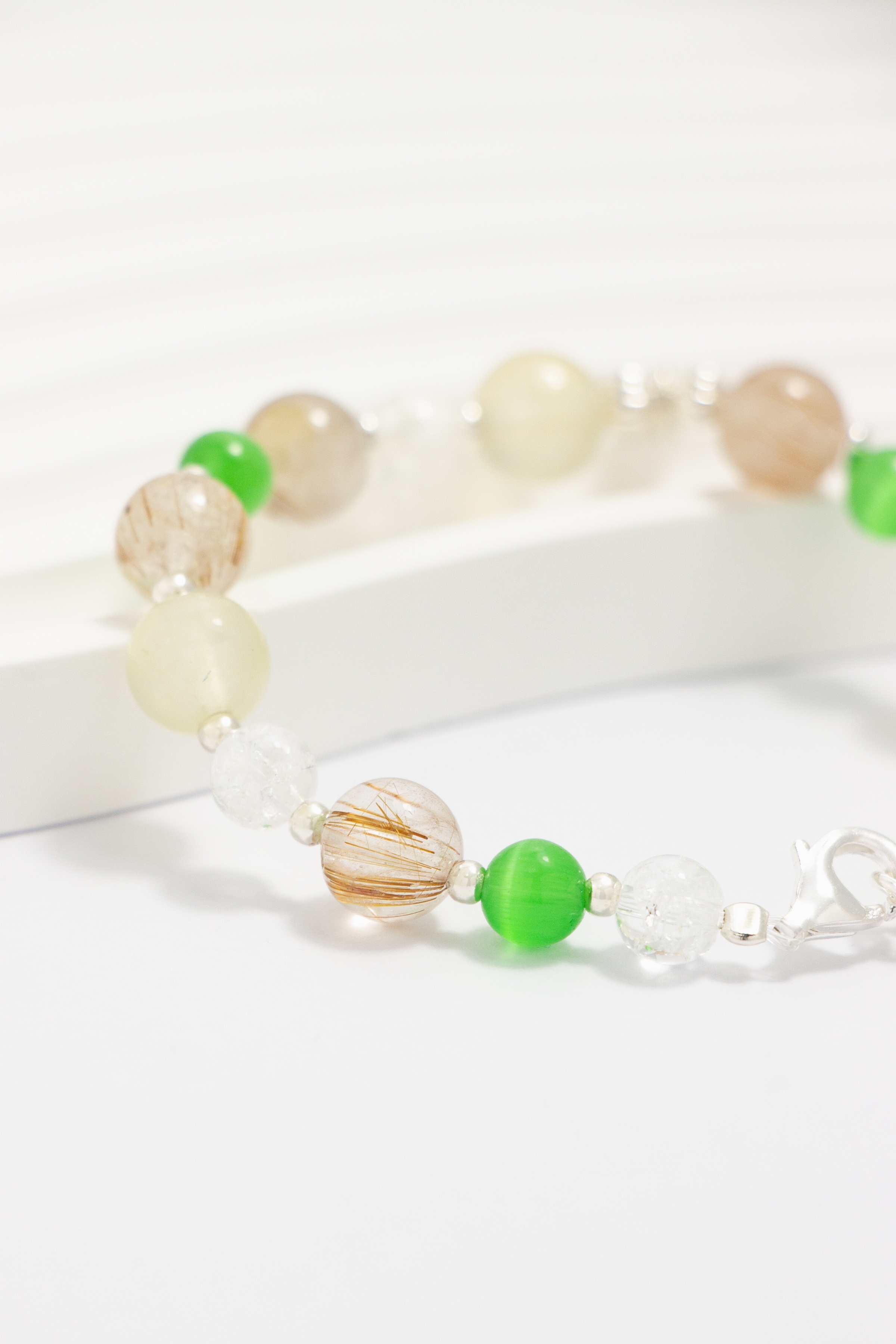 商品材質:鈦晶、馬來玉、綠貓眼石、爆花晶、925純銀