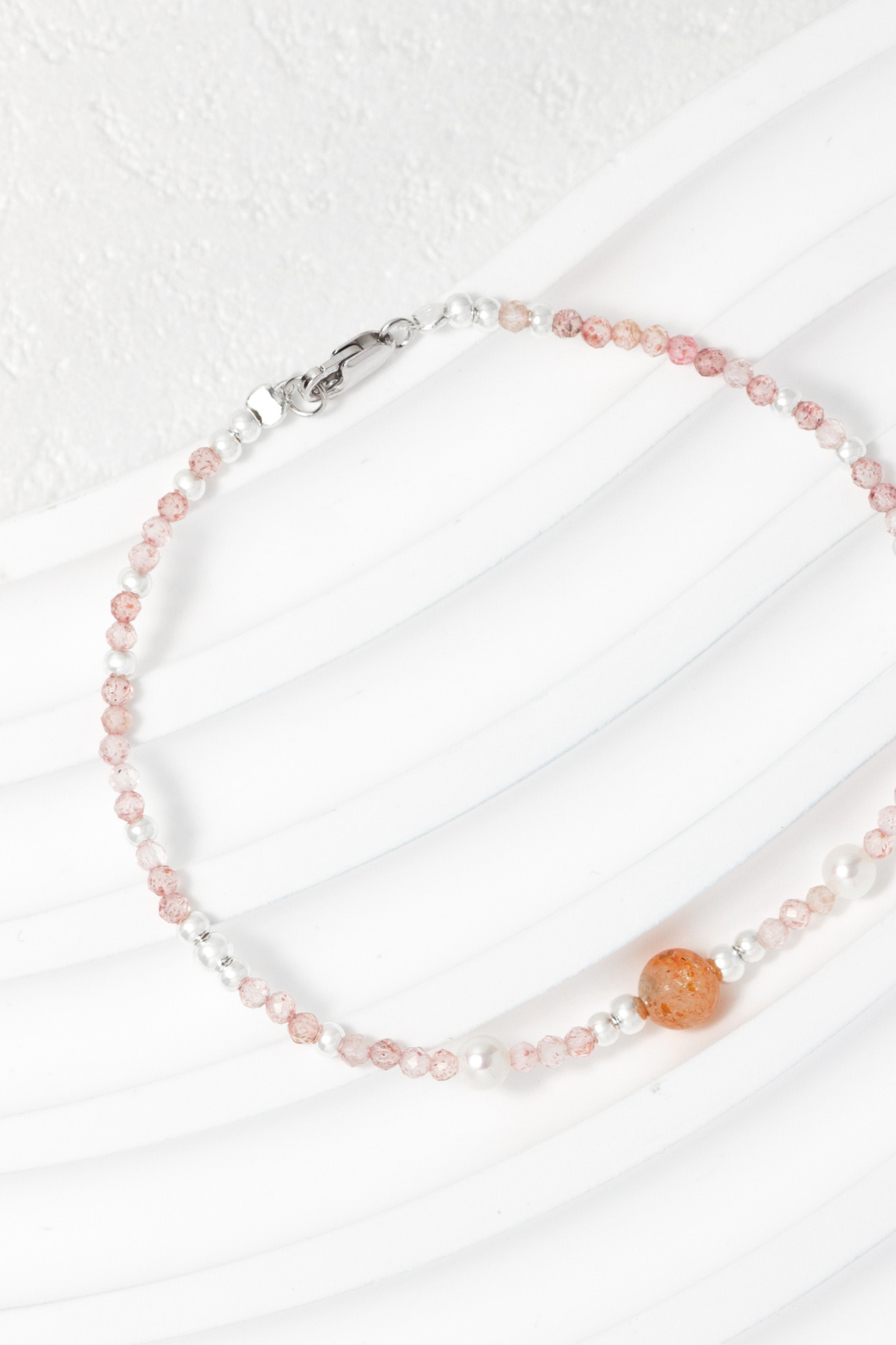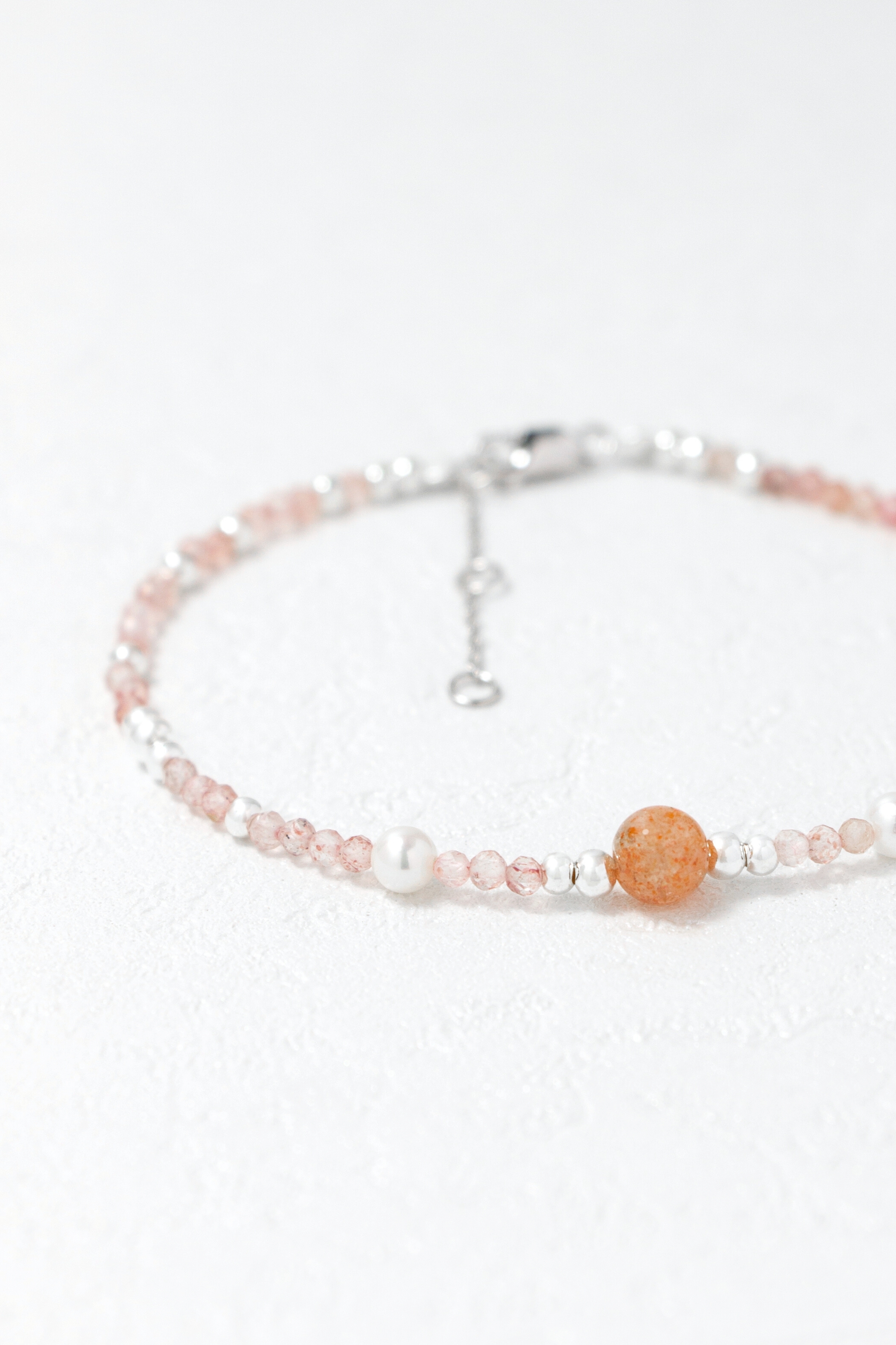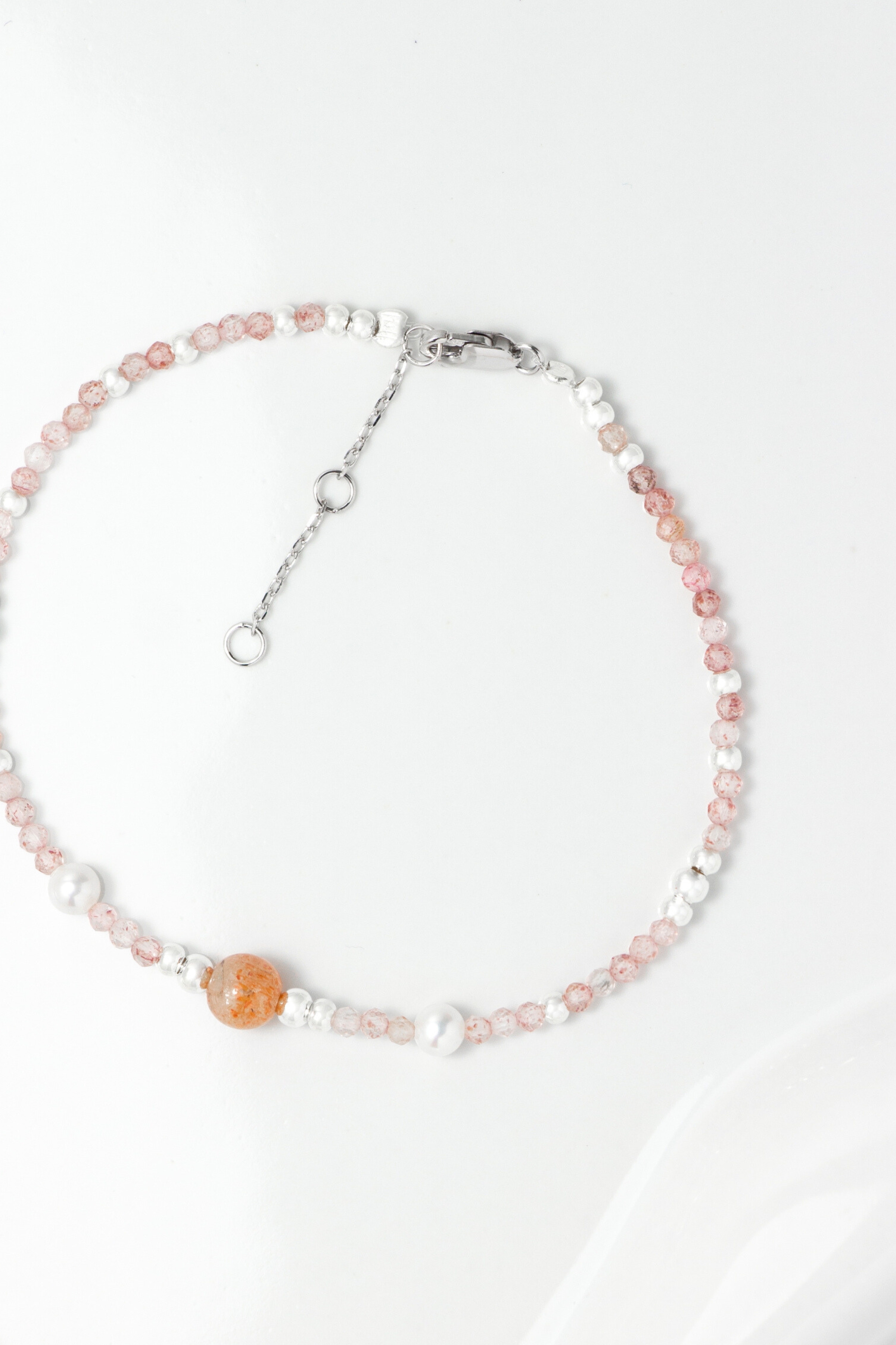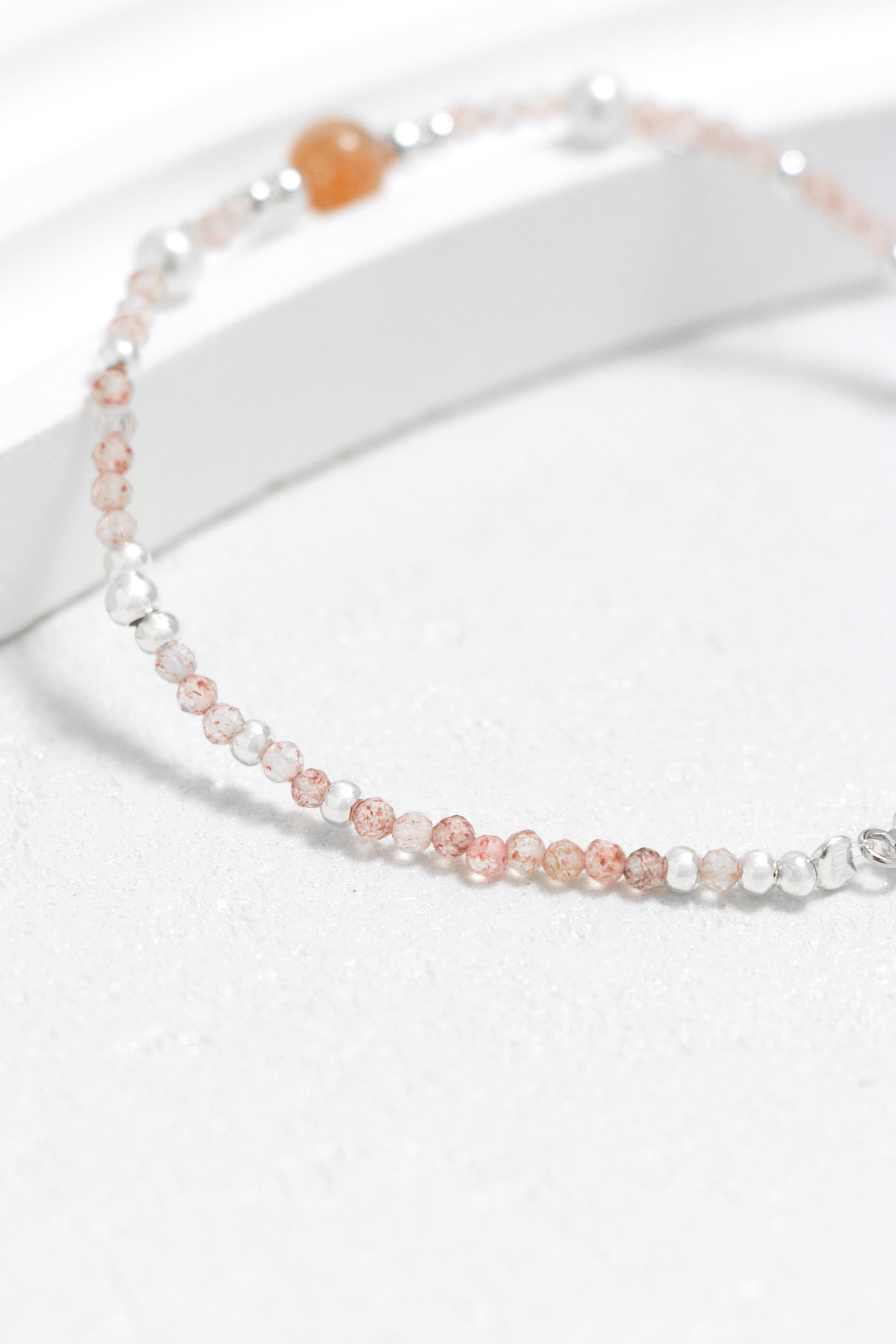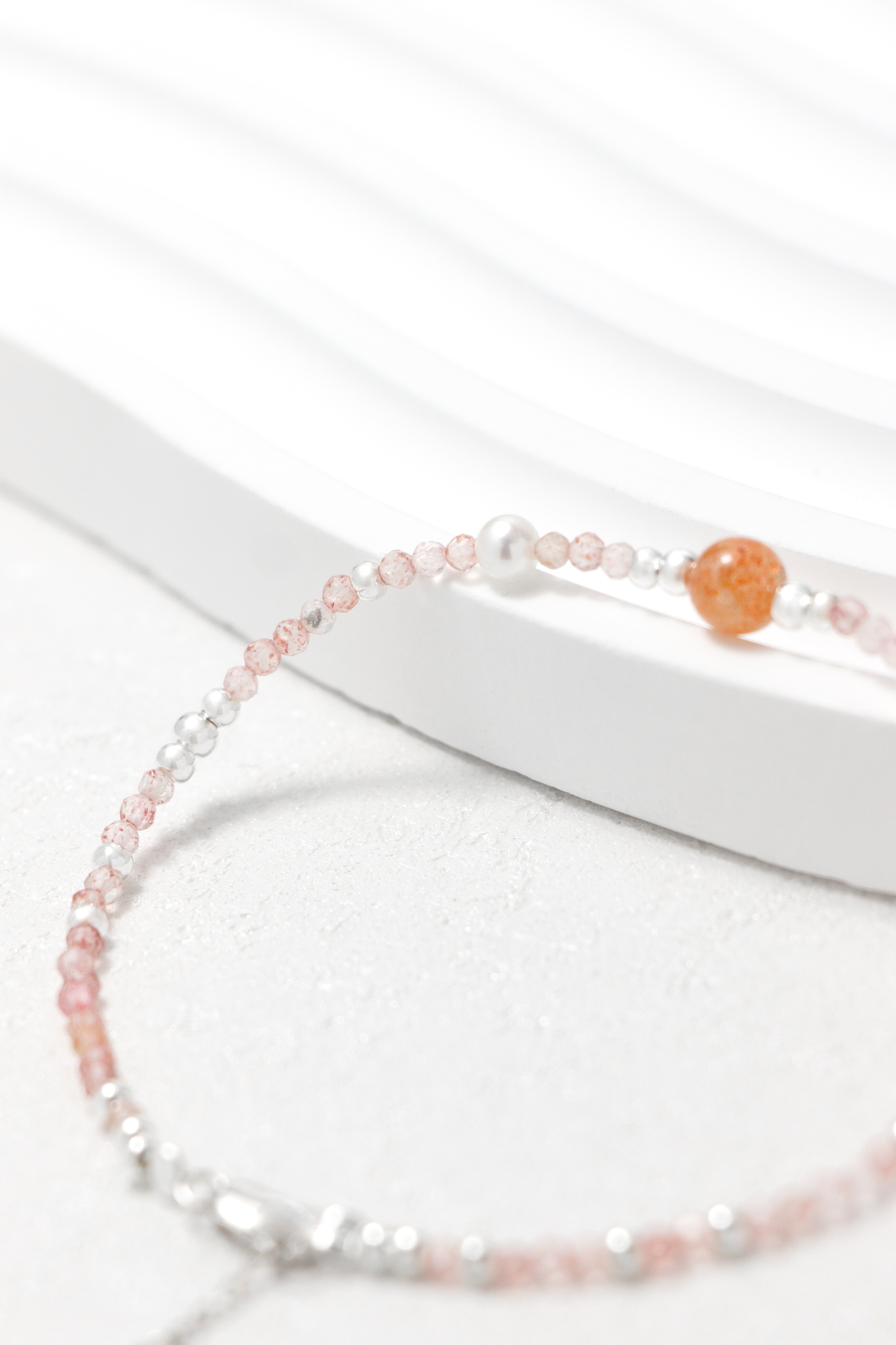 粉色礦石與暖橘光澤相互襯映,形成輕盈而富有層次的視覺感受,