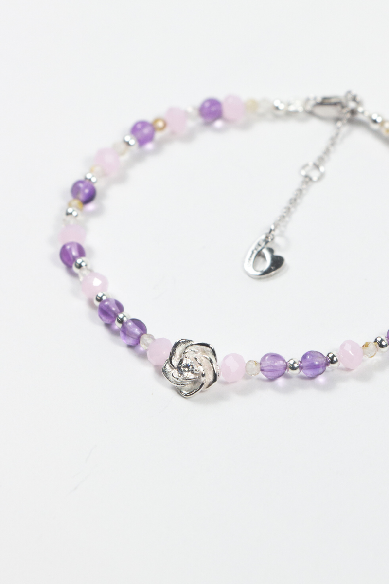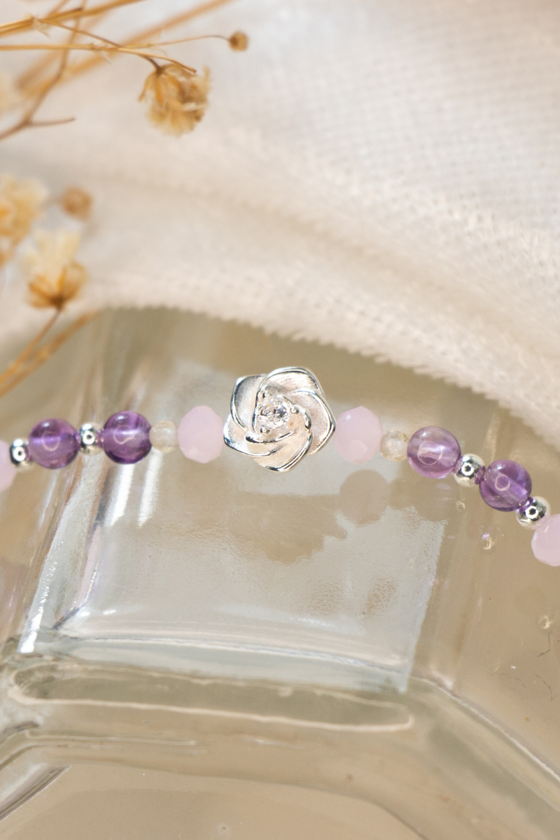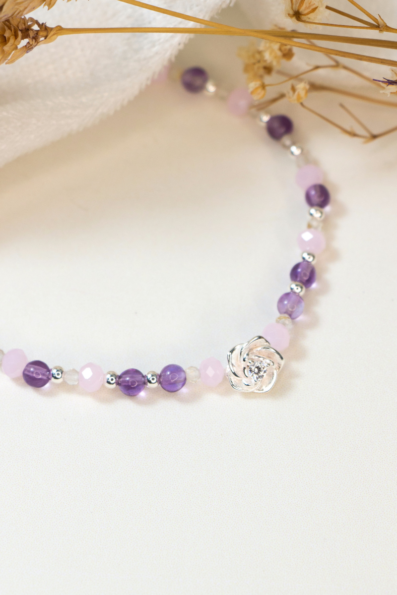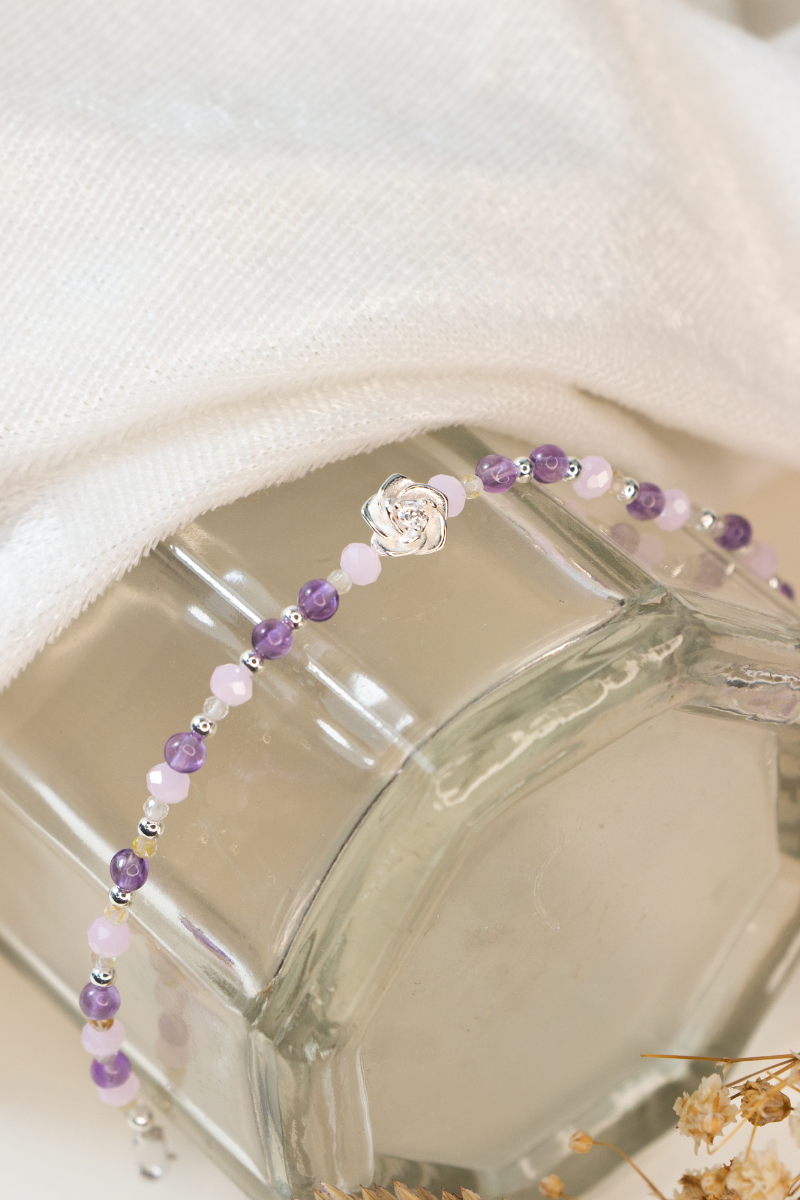 以柔和 紫色 與 粉色礦石 交織設計,