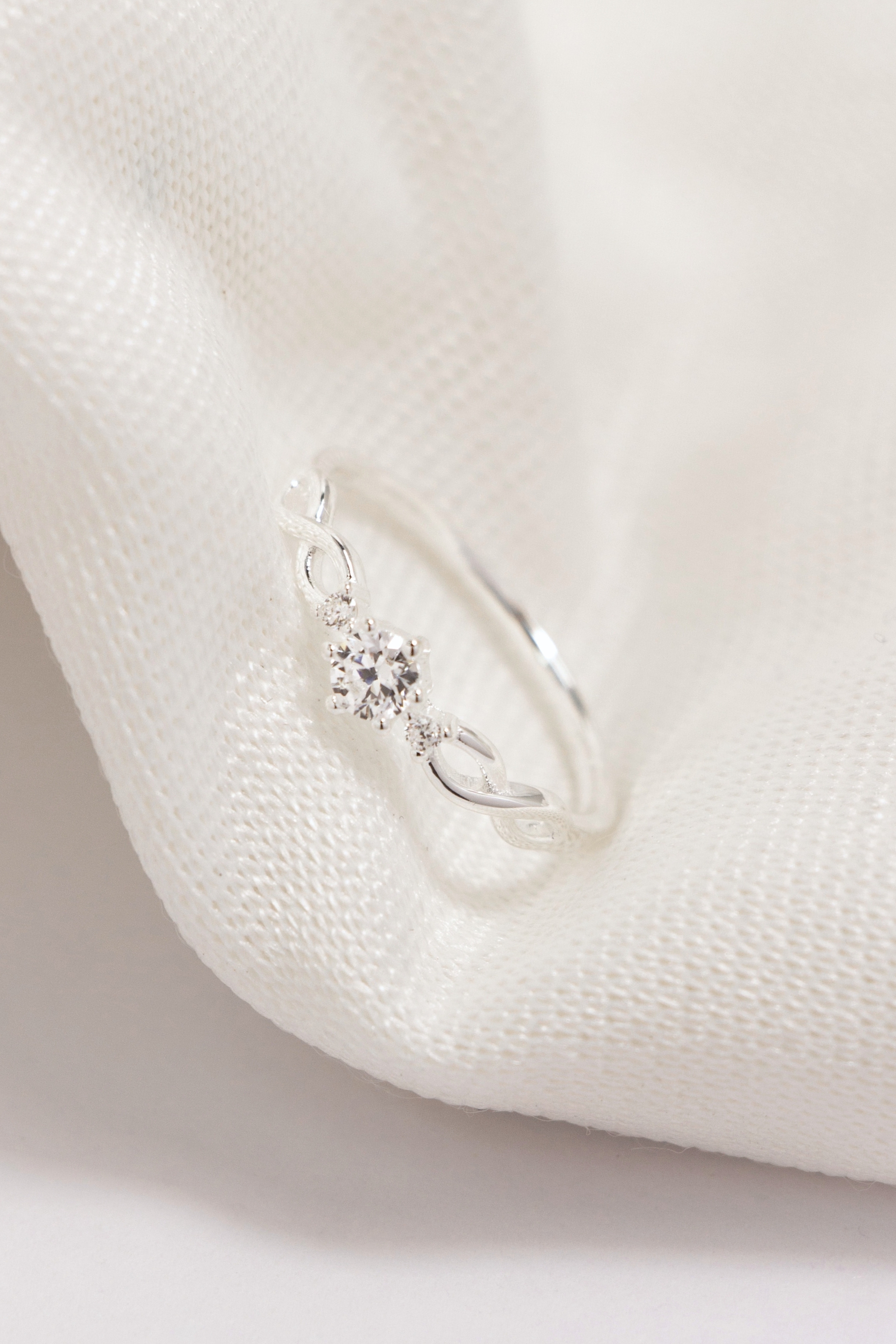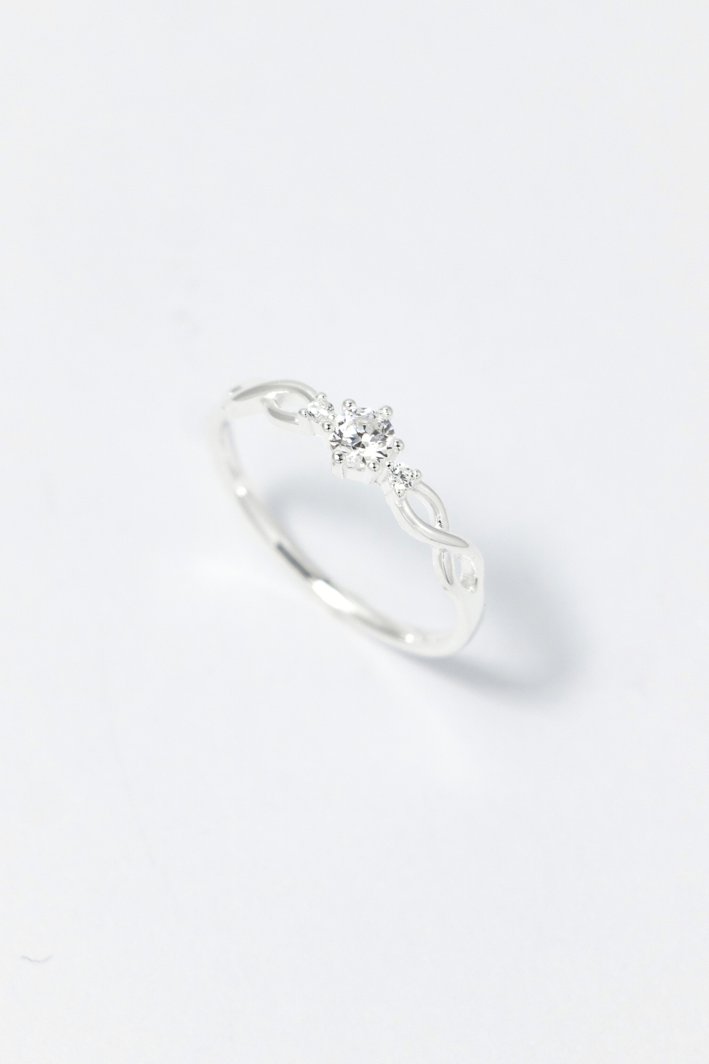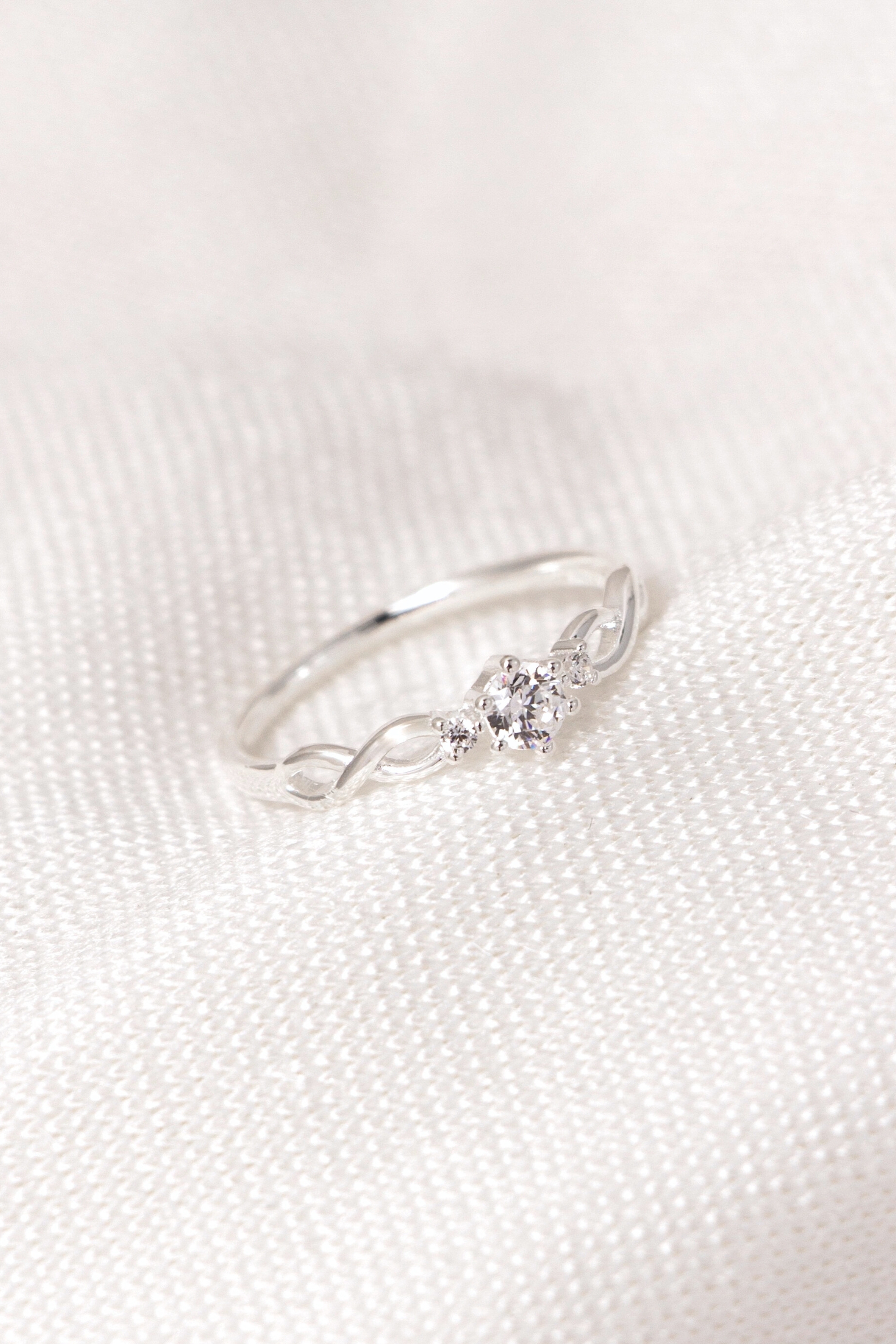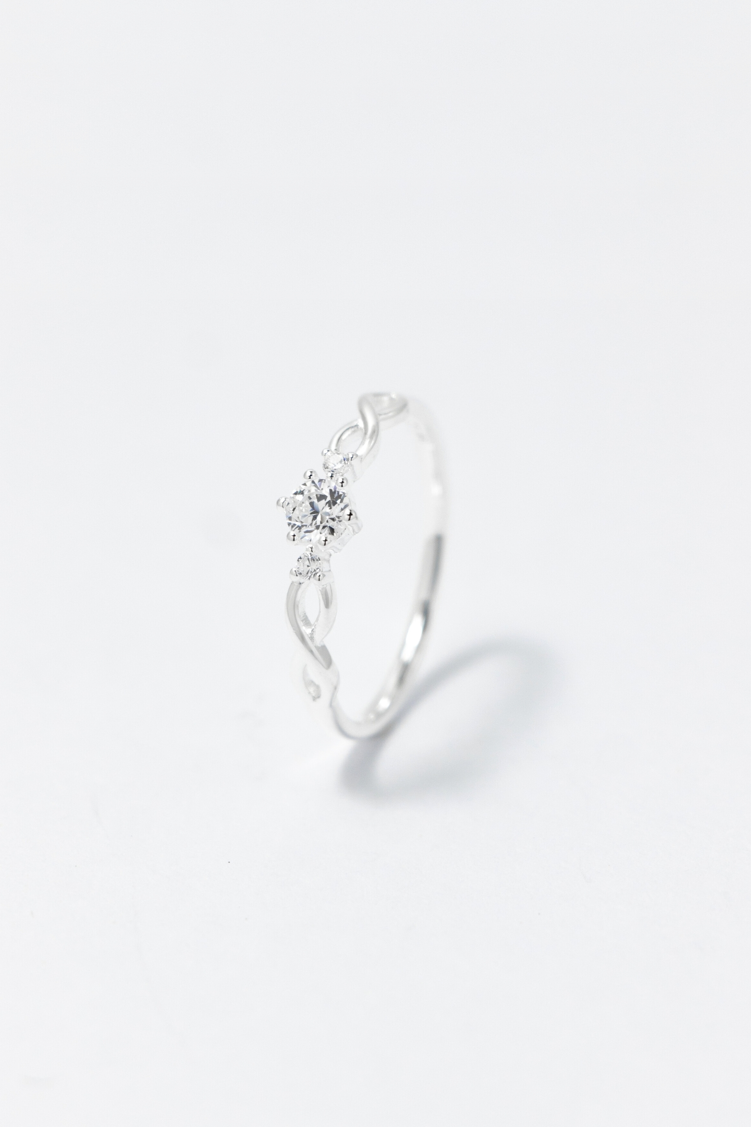 戒身以柔和曲線環繞交織,搭配中央主石與細緻點綴晶石,