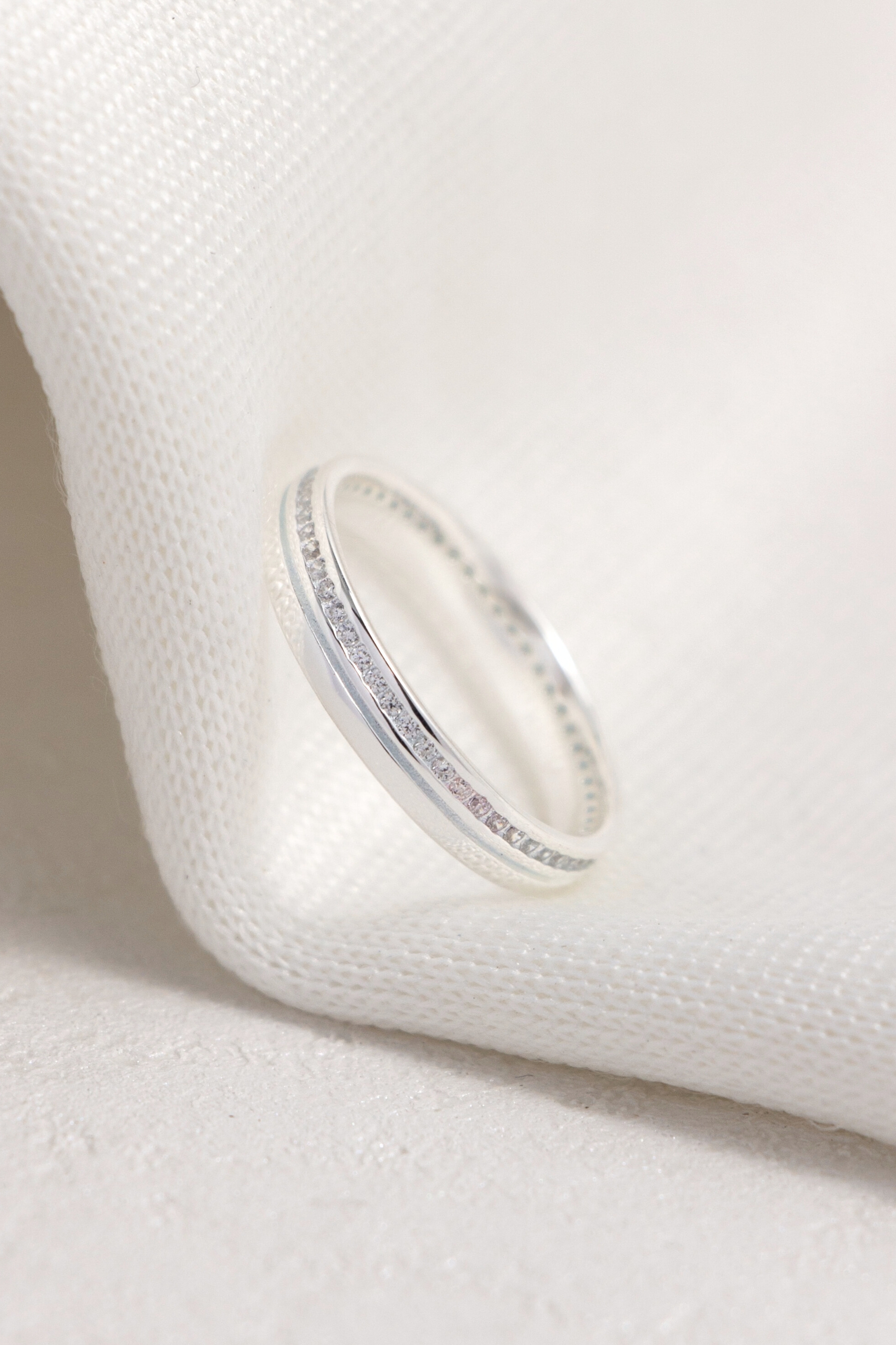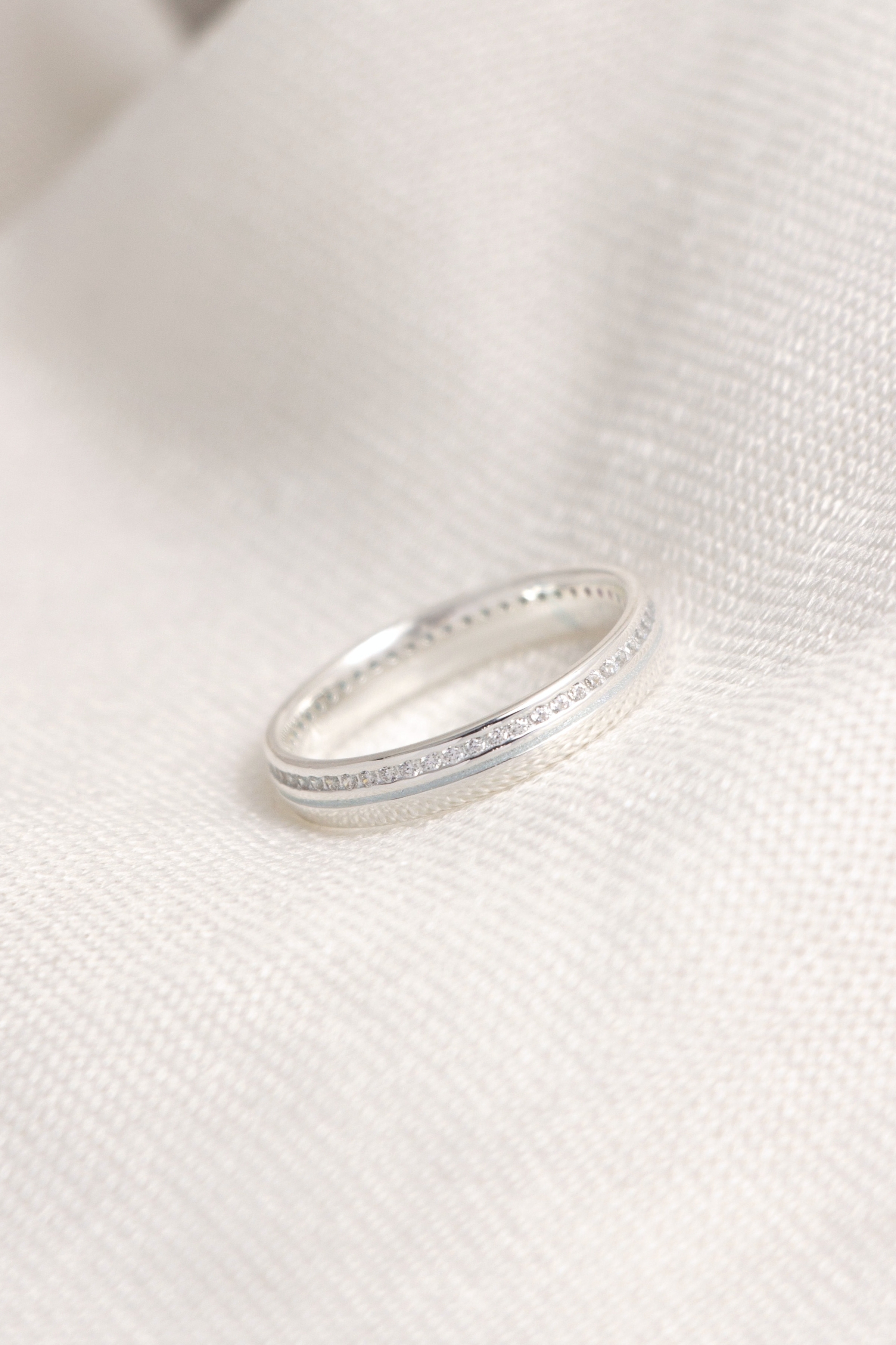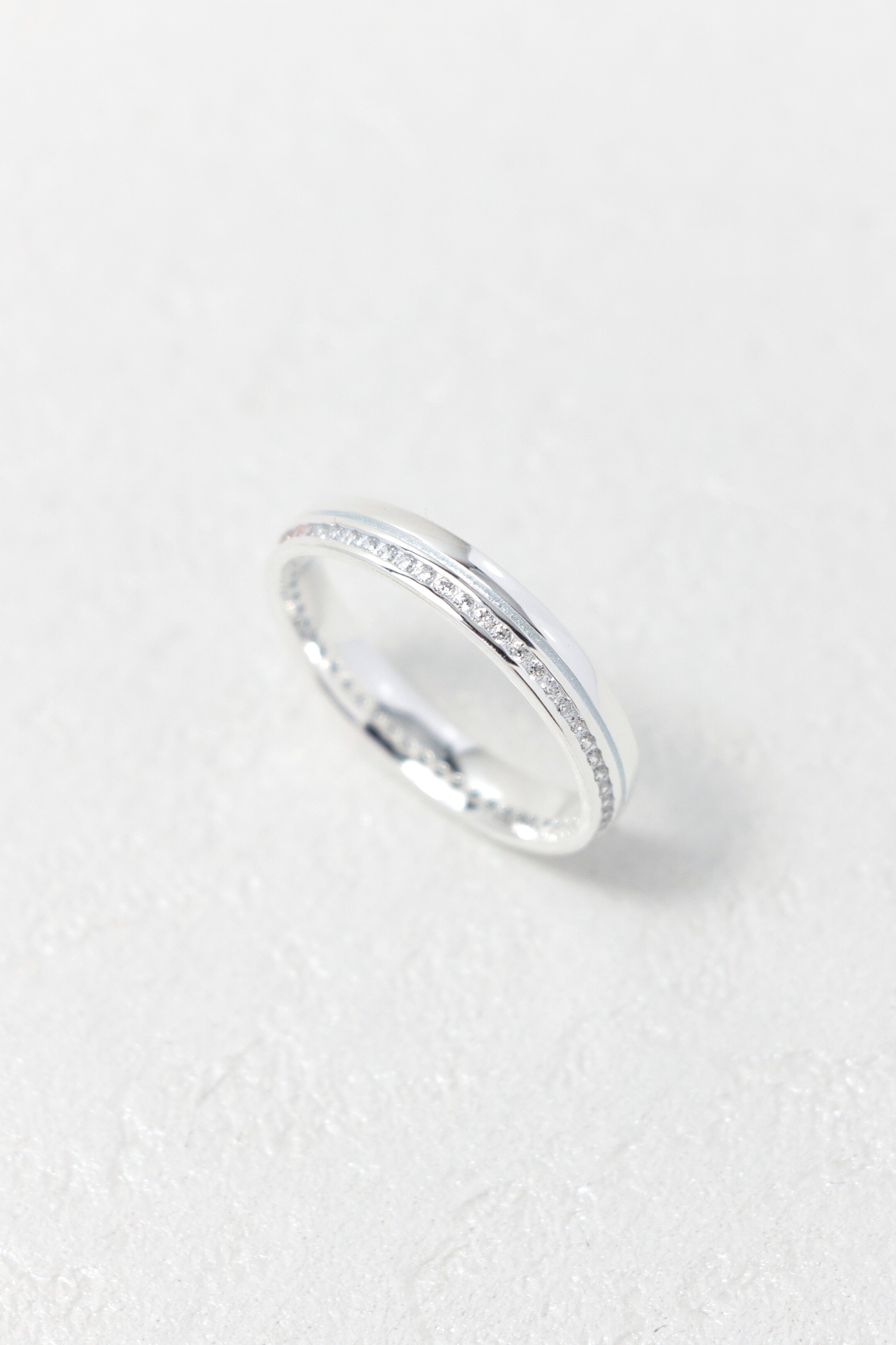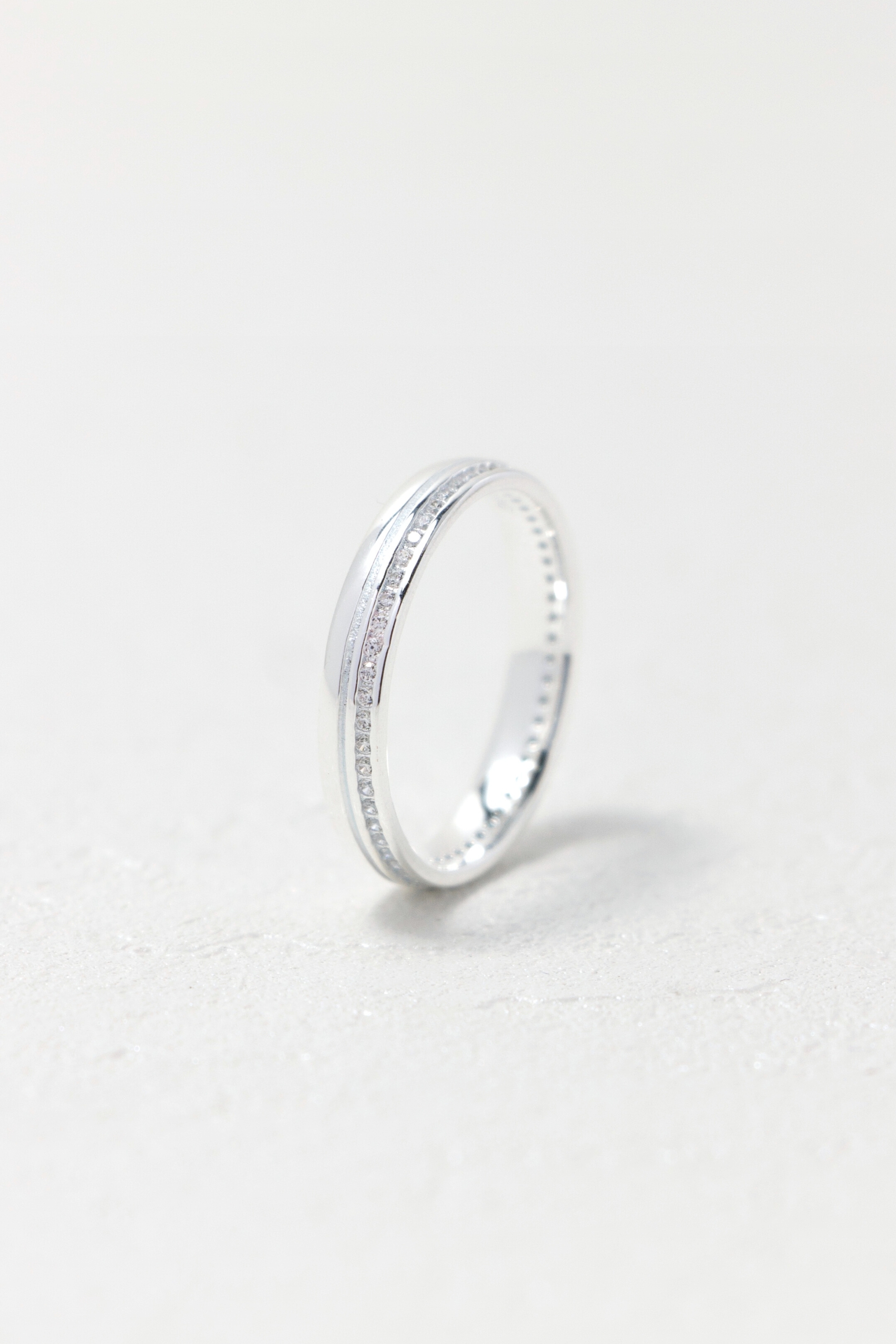 晶石沿戒身細緻鋪展,