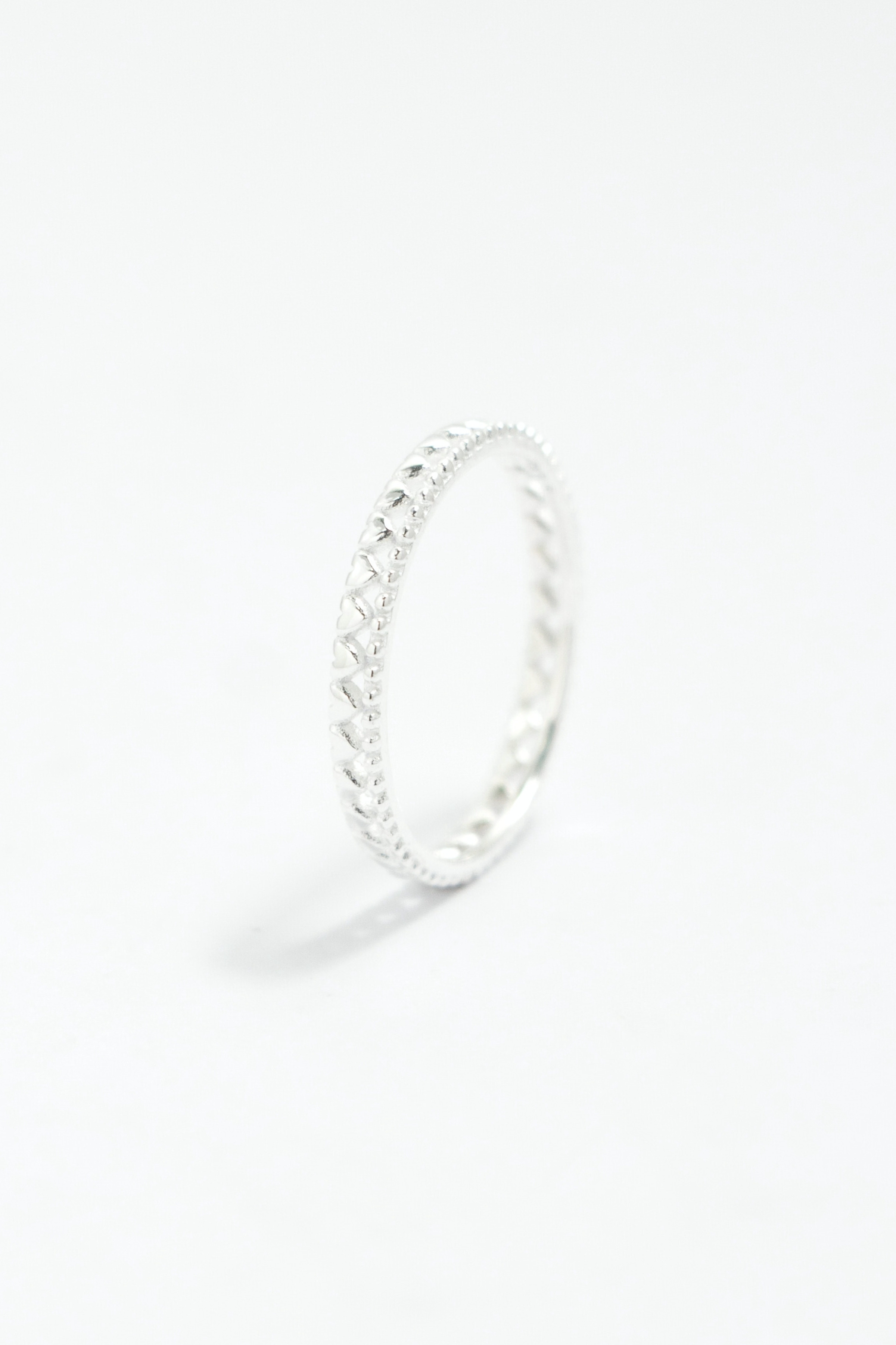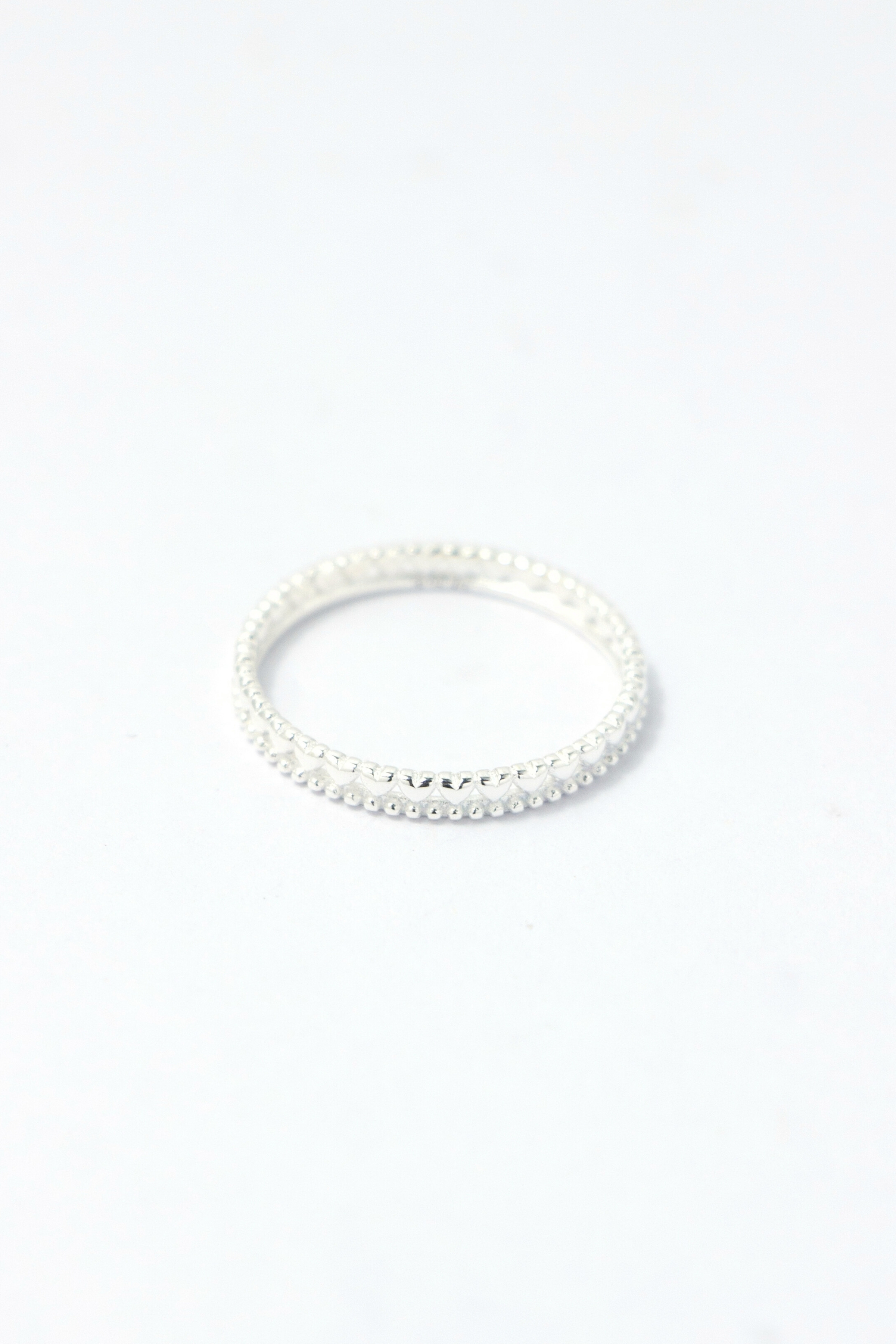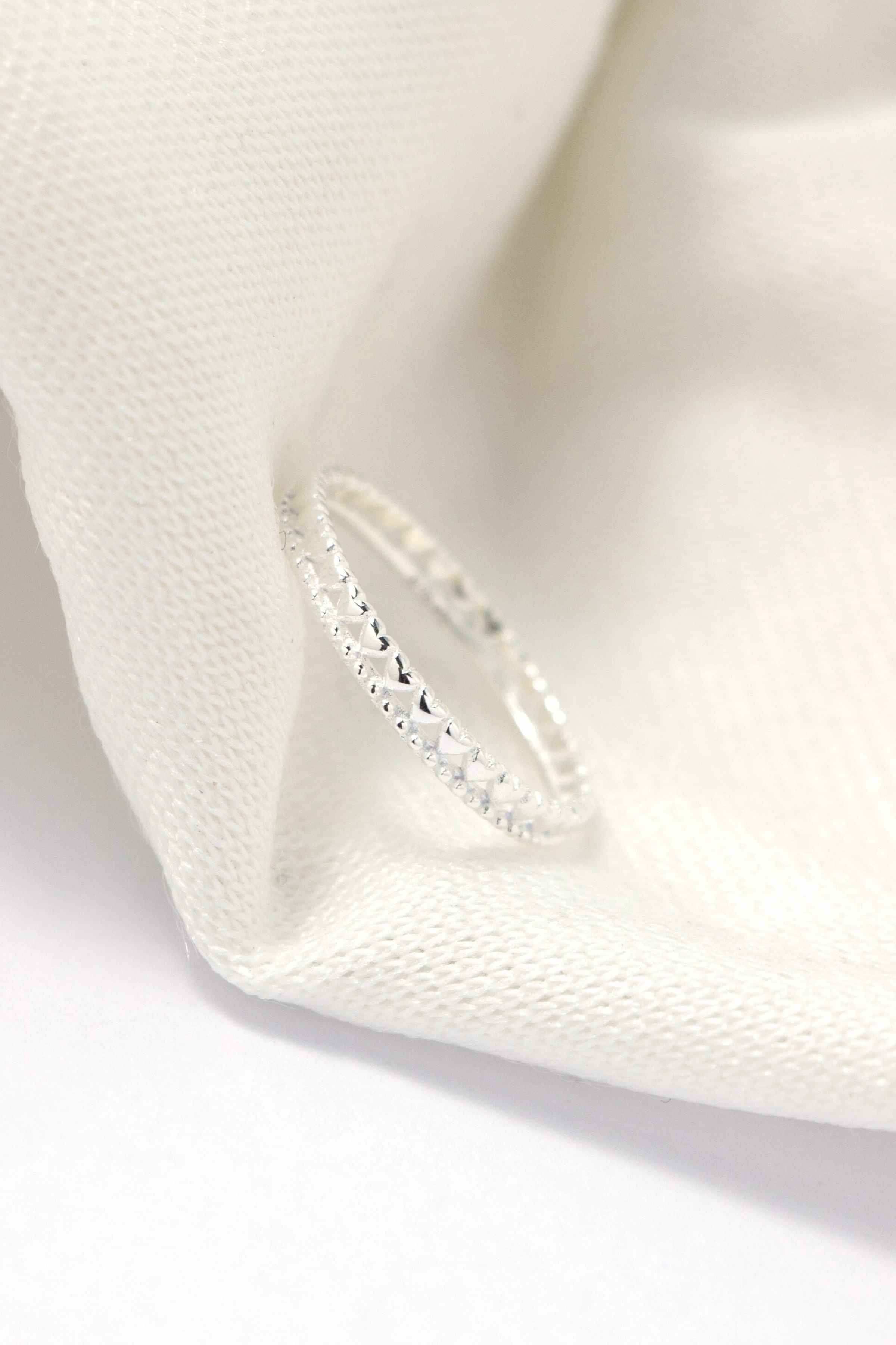 以細緻鏤空編織勾勒出連續心形輪廓,象徵情感環環相扣不間斷,