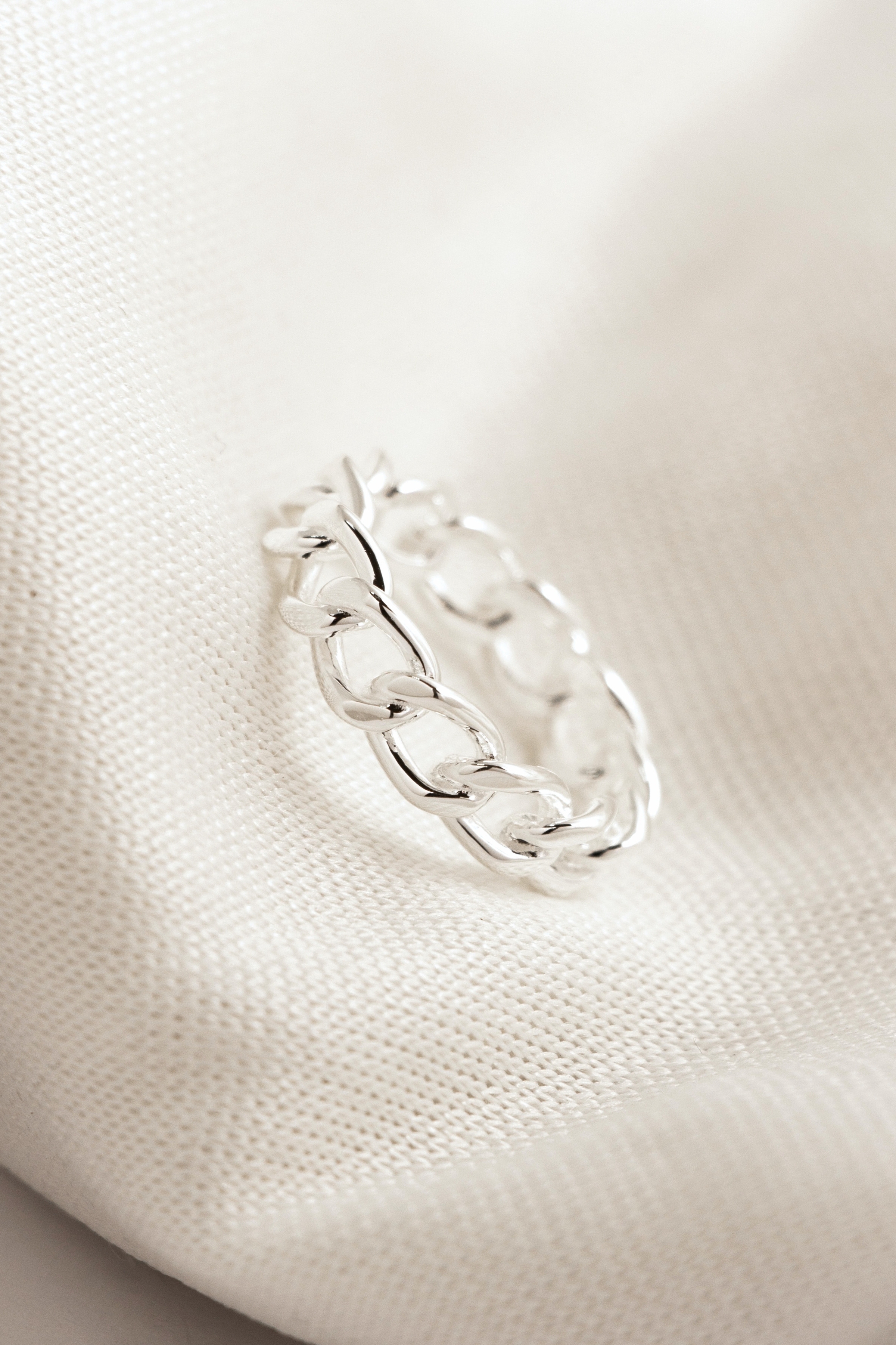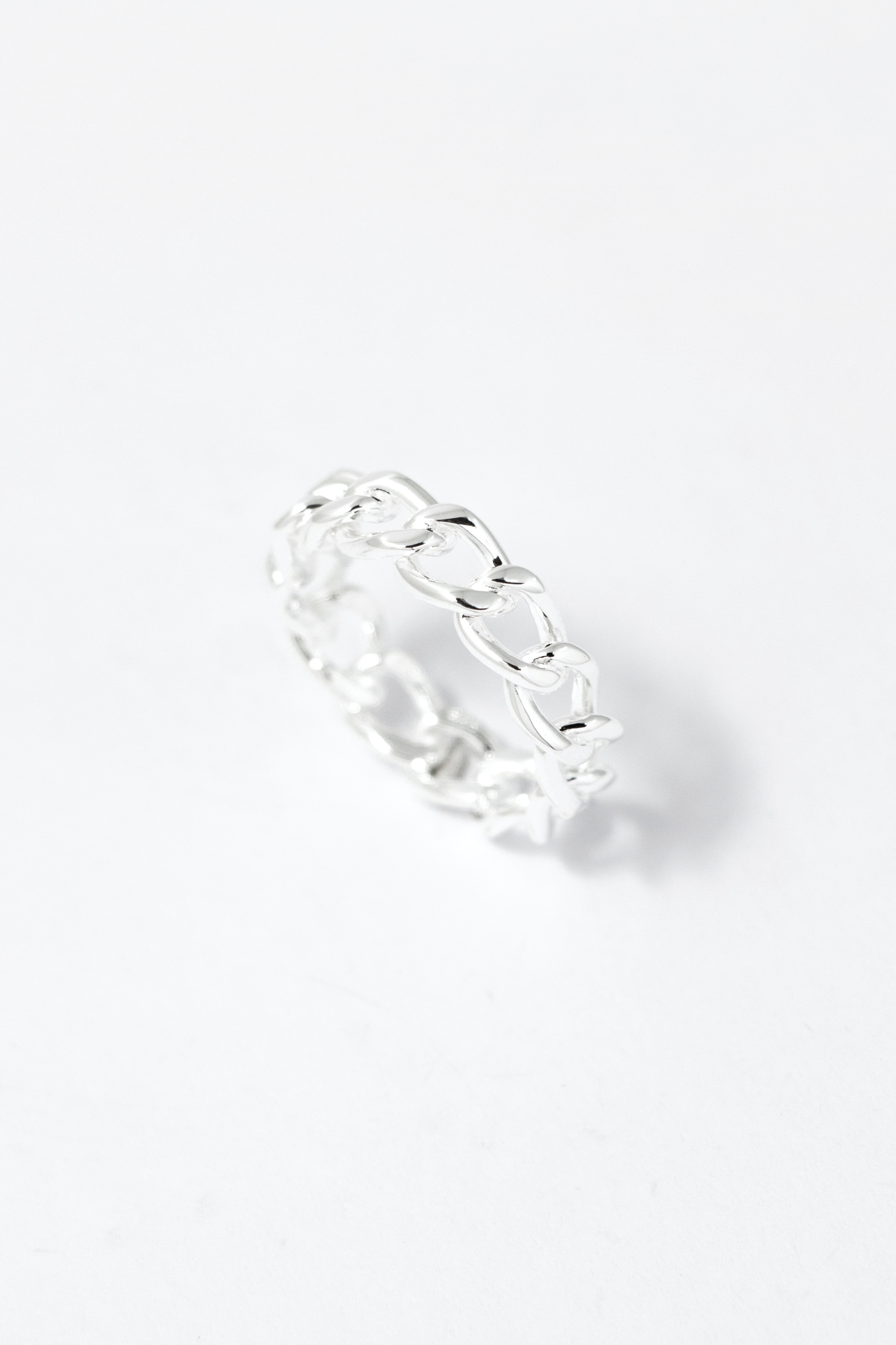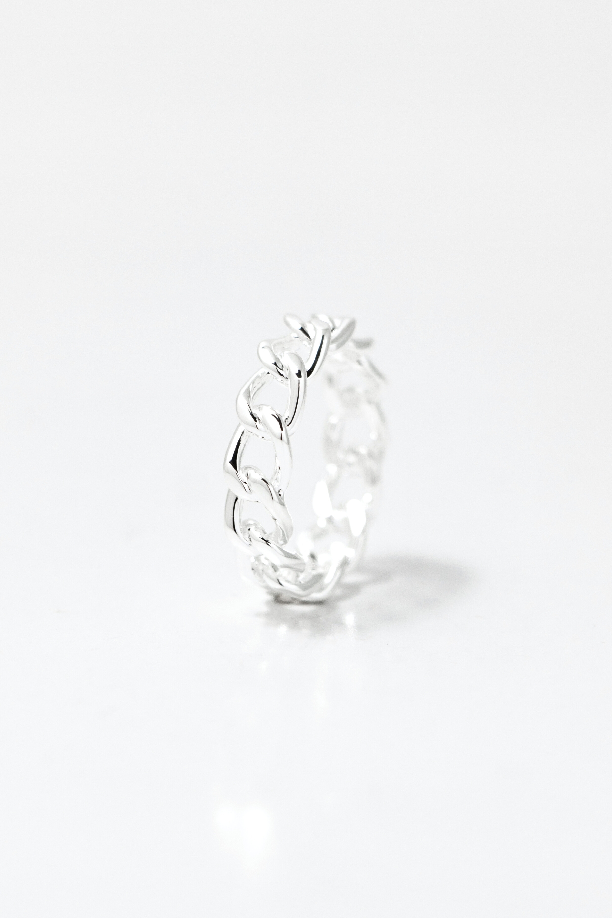 女款戒身以更纖細的鏈節線條呈現,