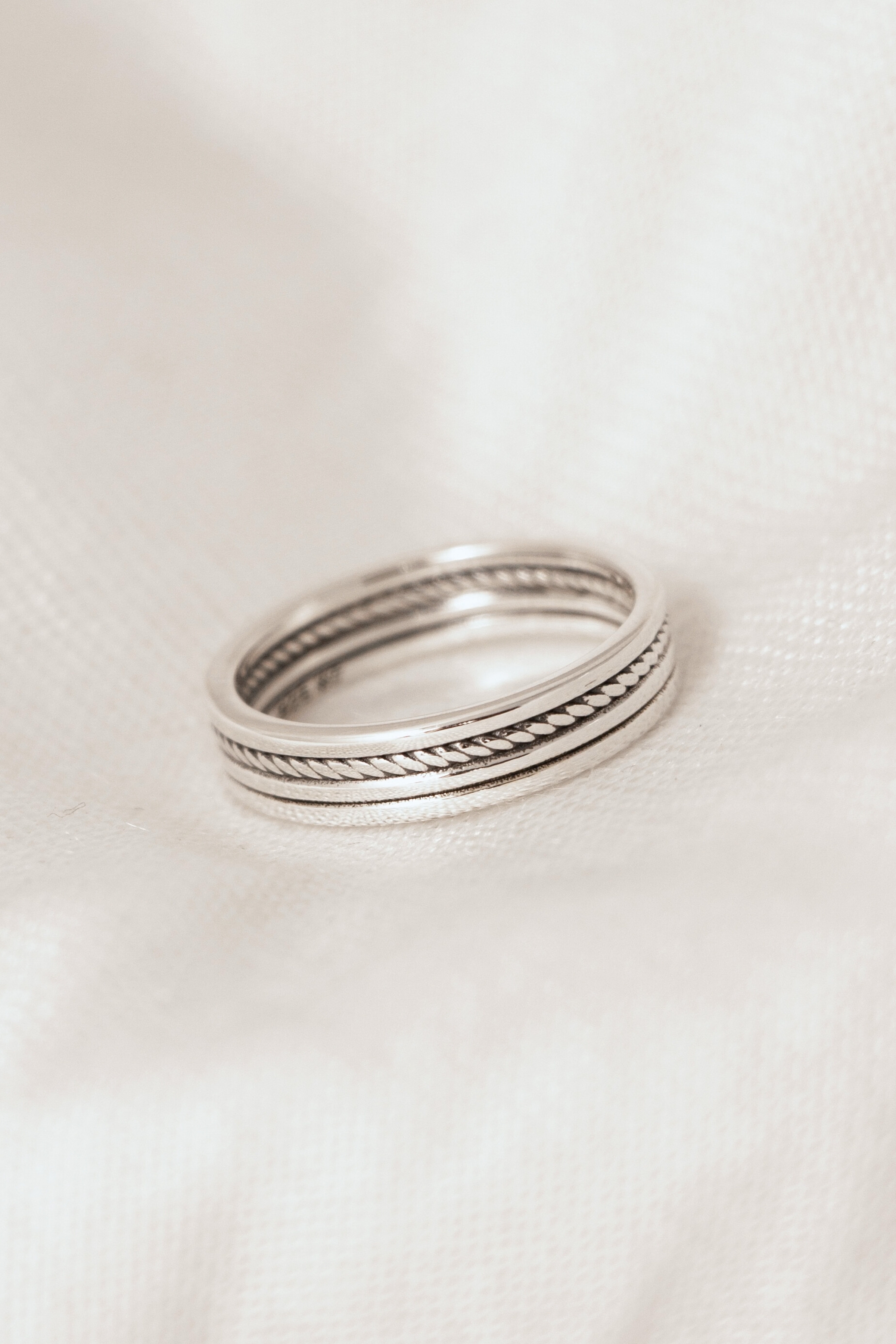 女款戒身以更柔和的線條與細緻刻紋呈現,如溫柔心跳般的節奏,