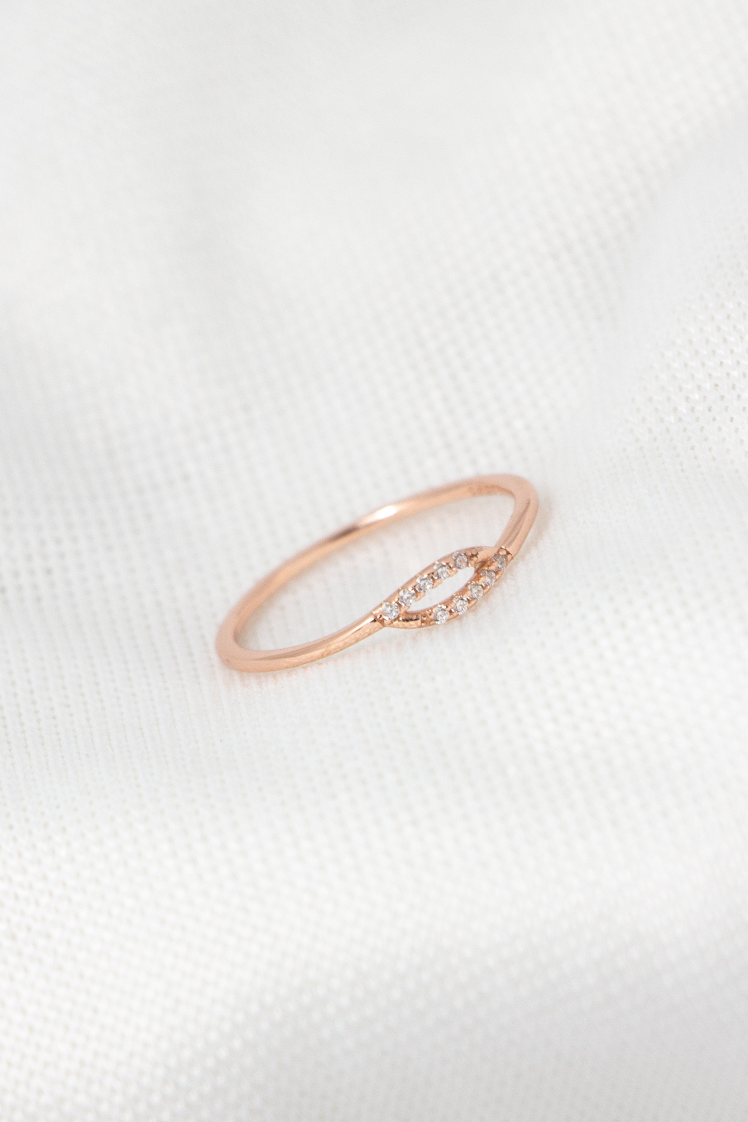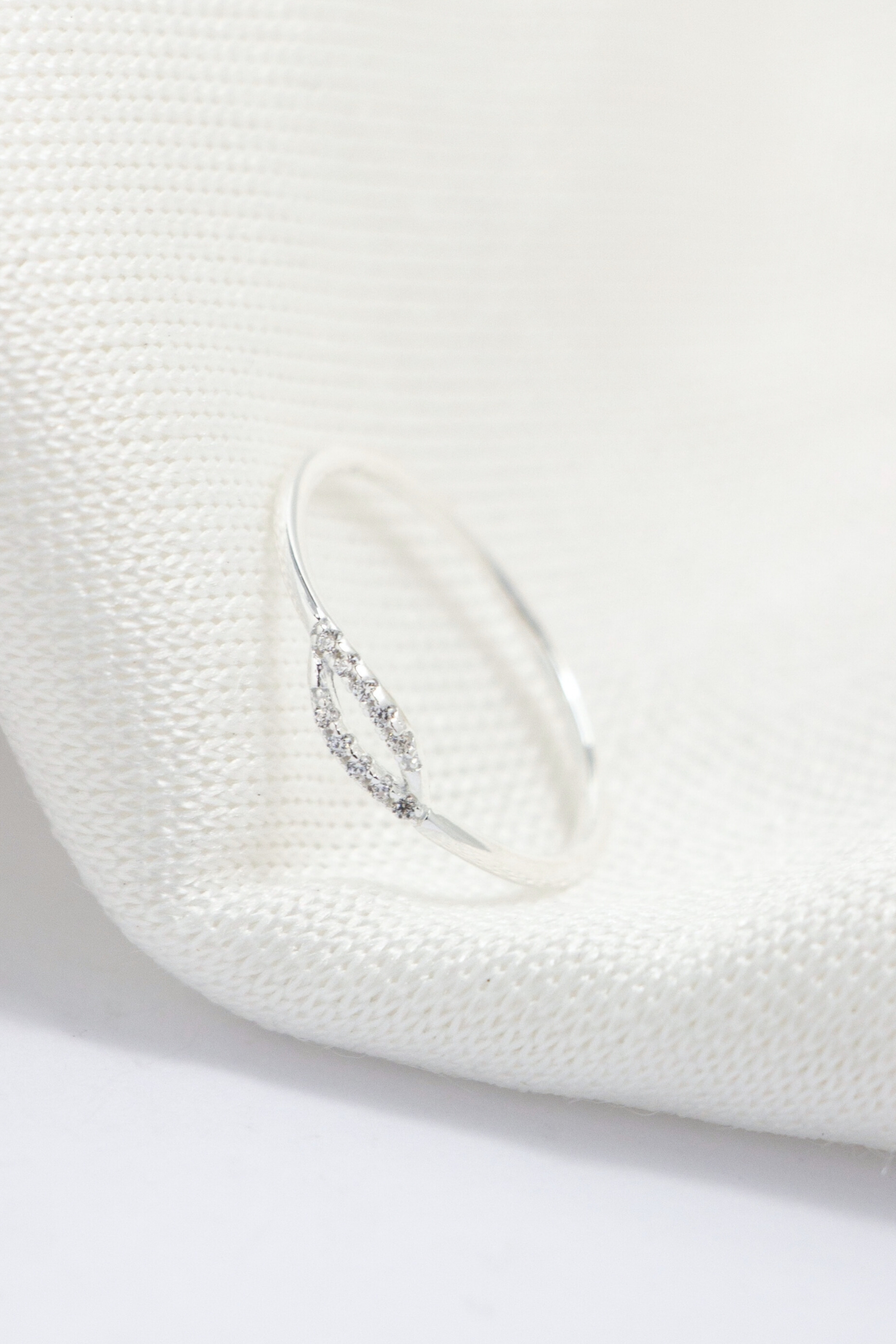 以流暢弧線交錯構築戒身輪廓,雙排細鑽沿線排列,