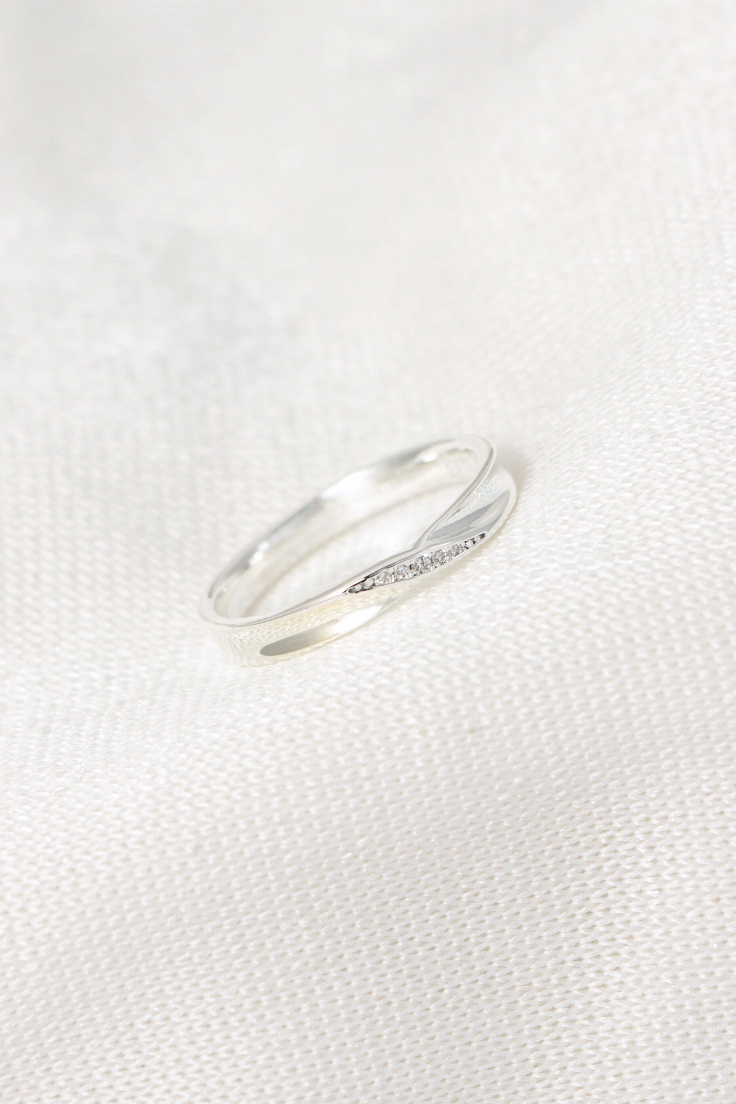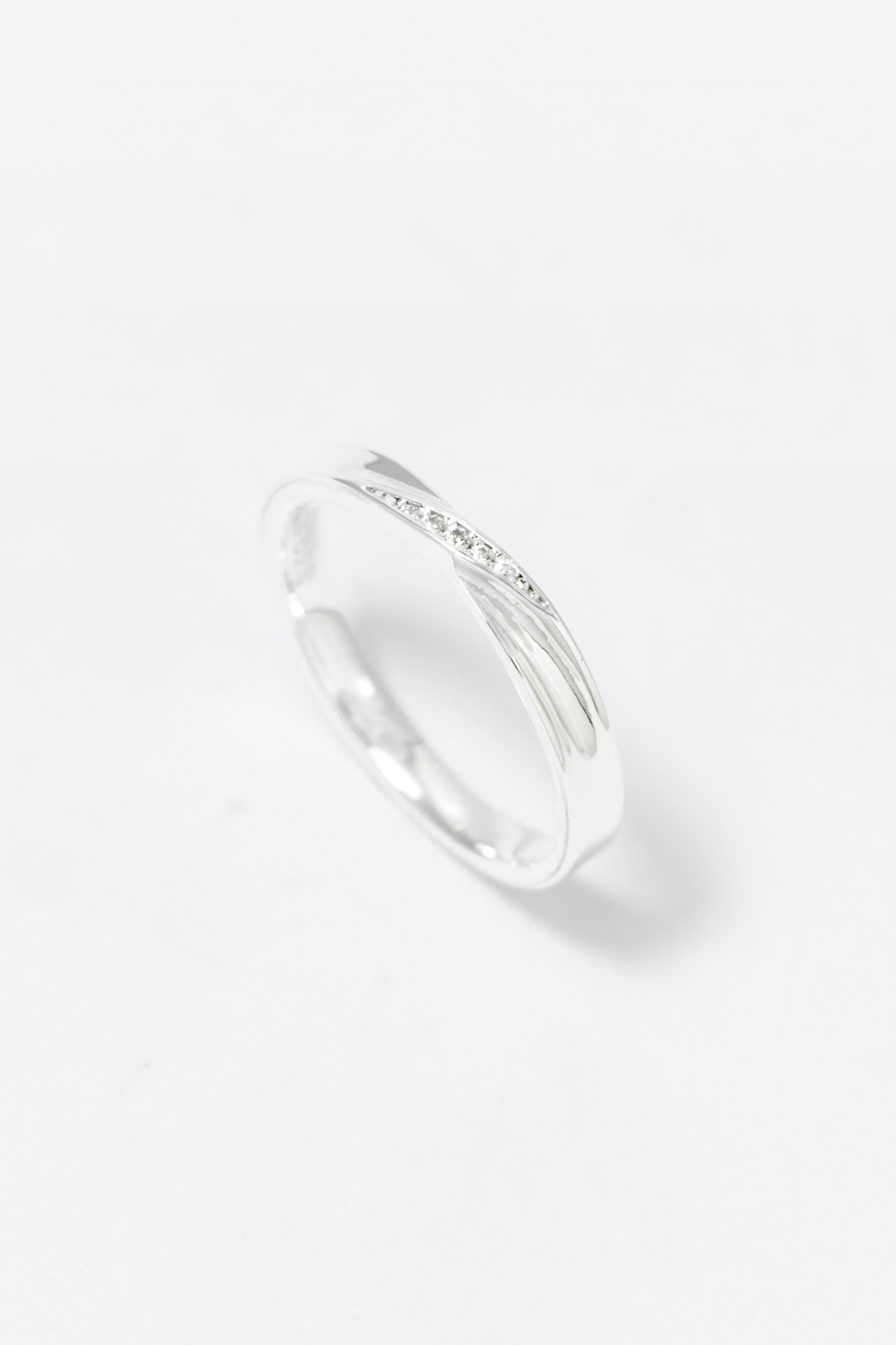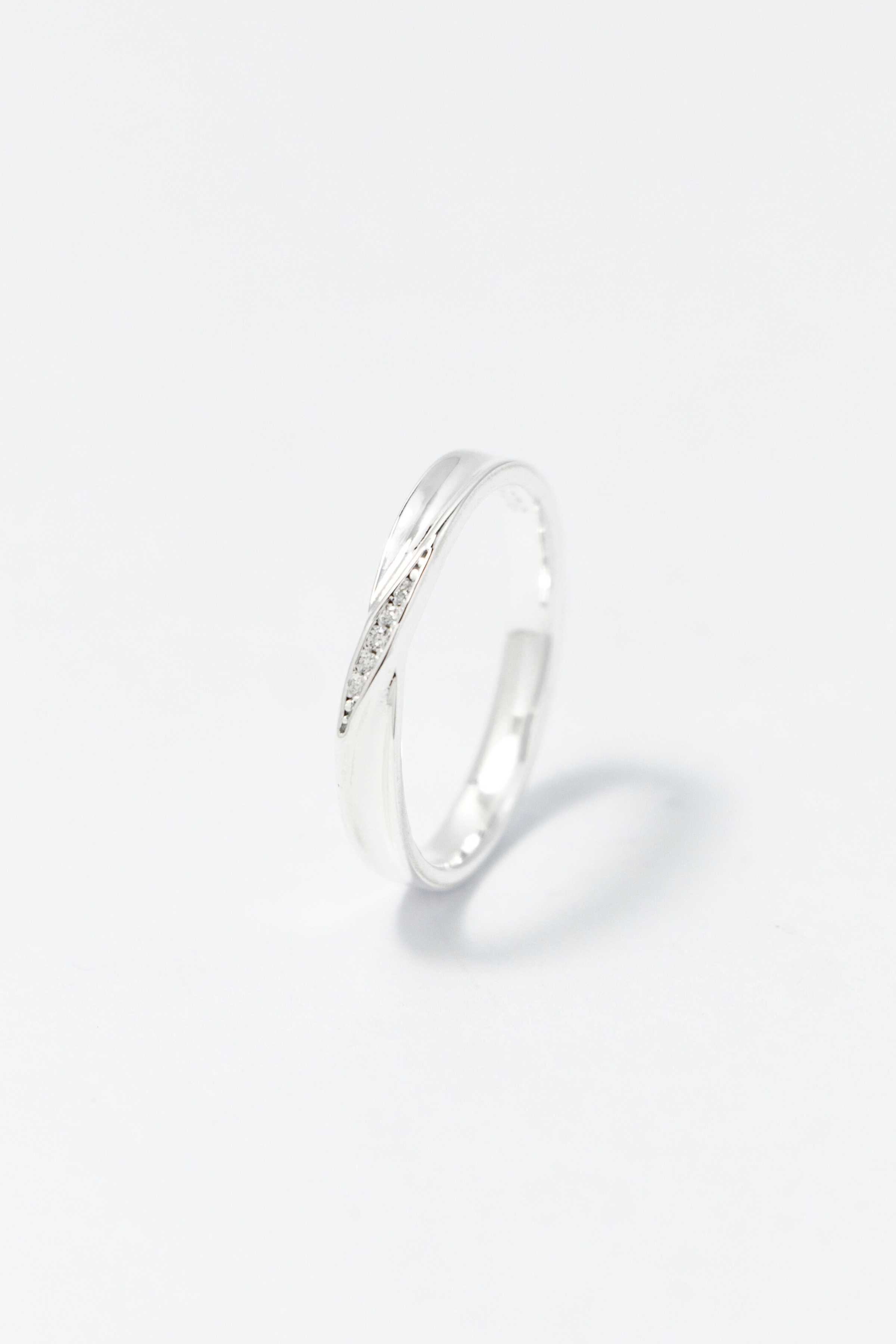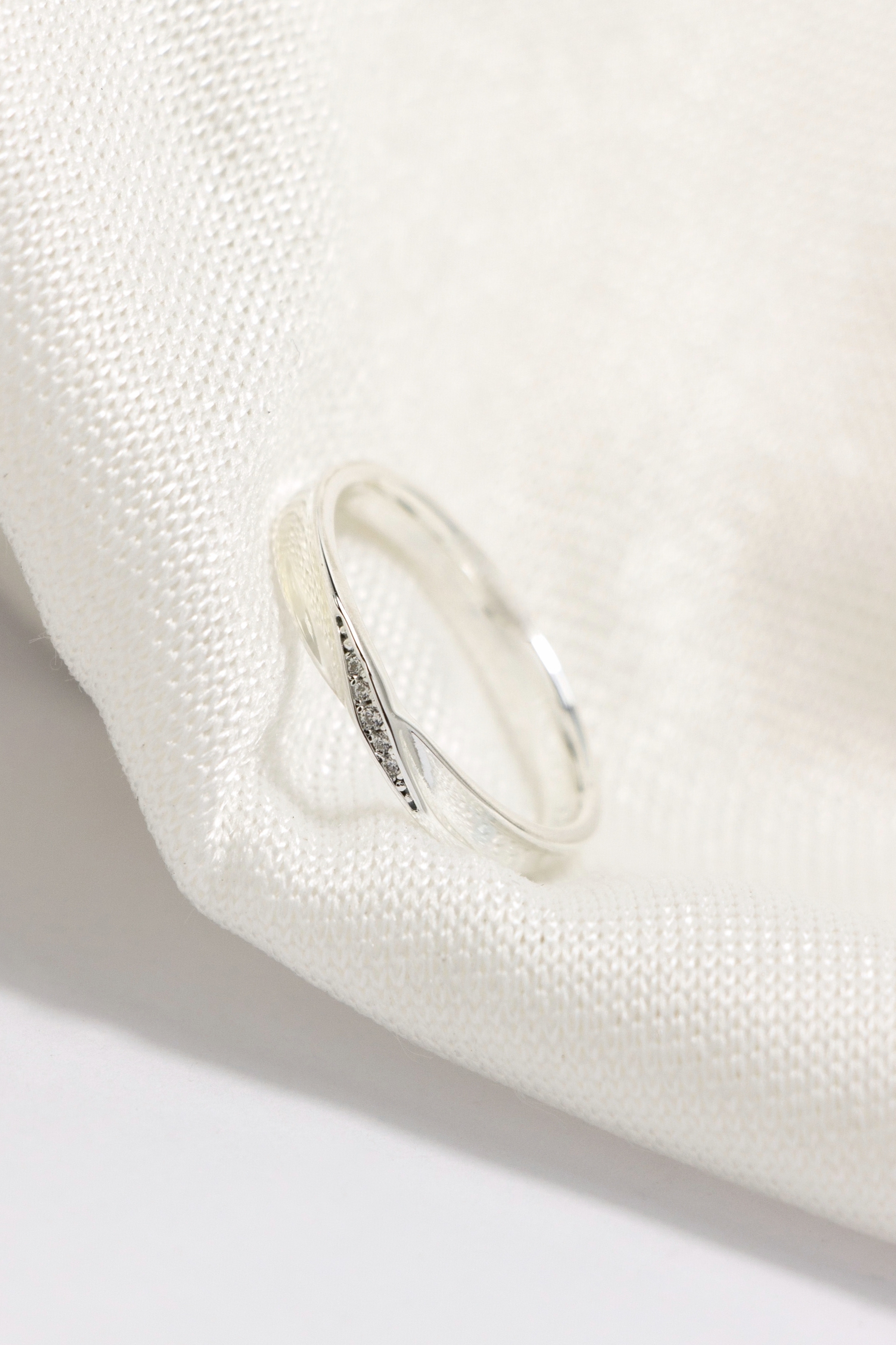 流動弧線包覆戒身,中央鑲嵌鋯石如情感軌跡,