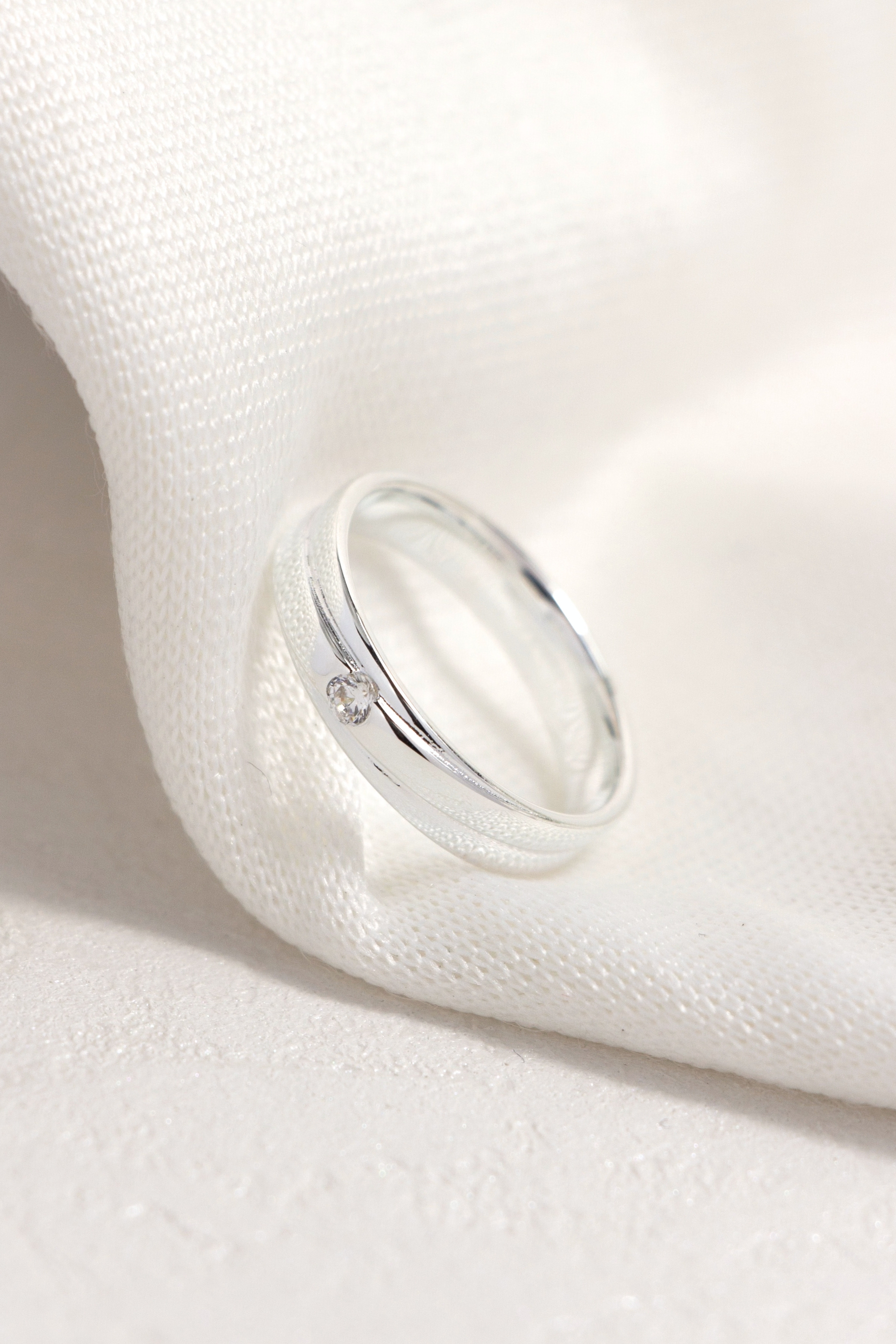對戒相互呼應|與女款流線設計相映成對,象徵彼此依偎與長久相伴
