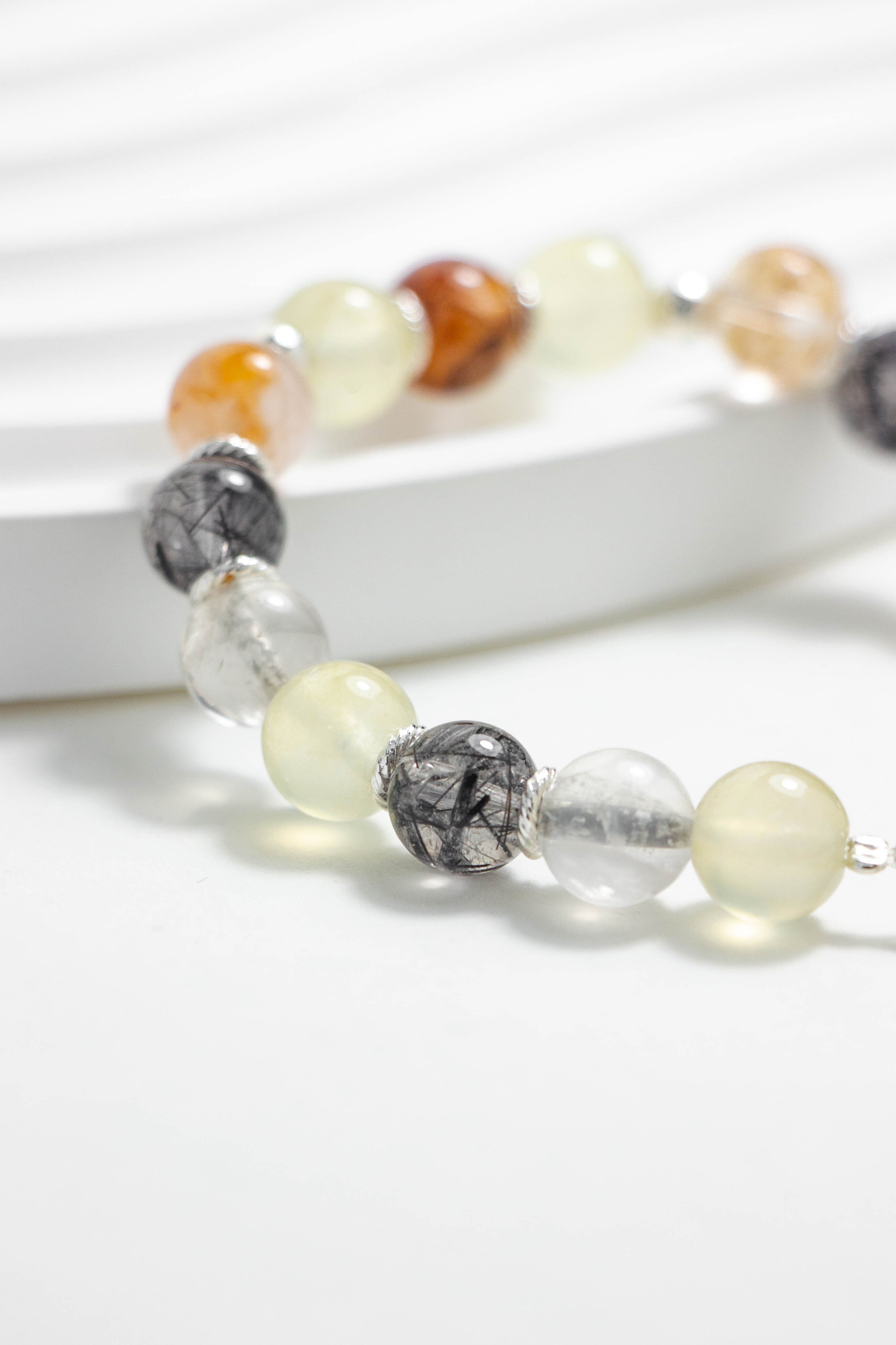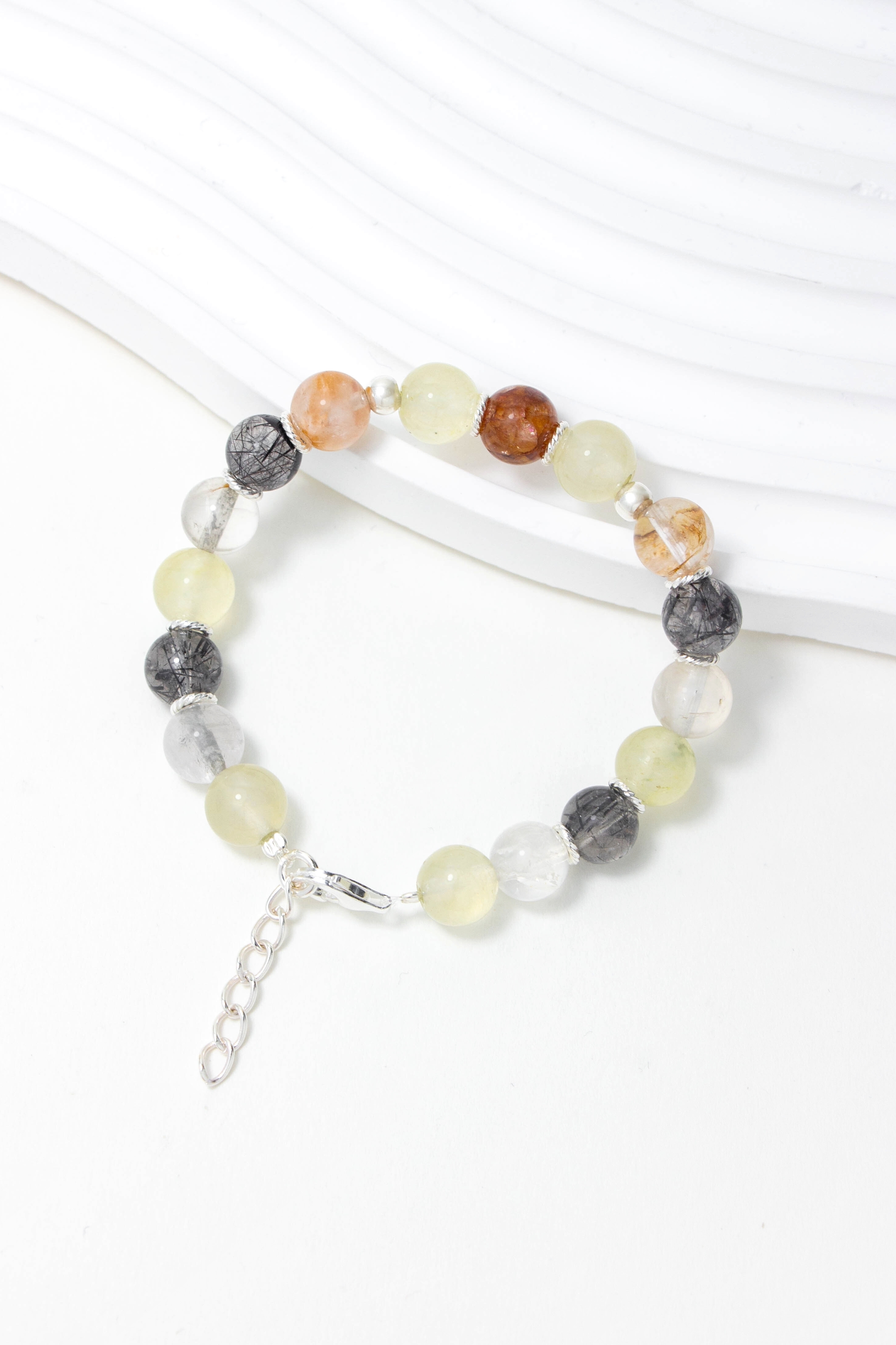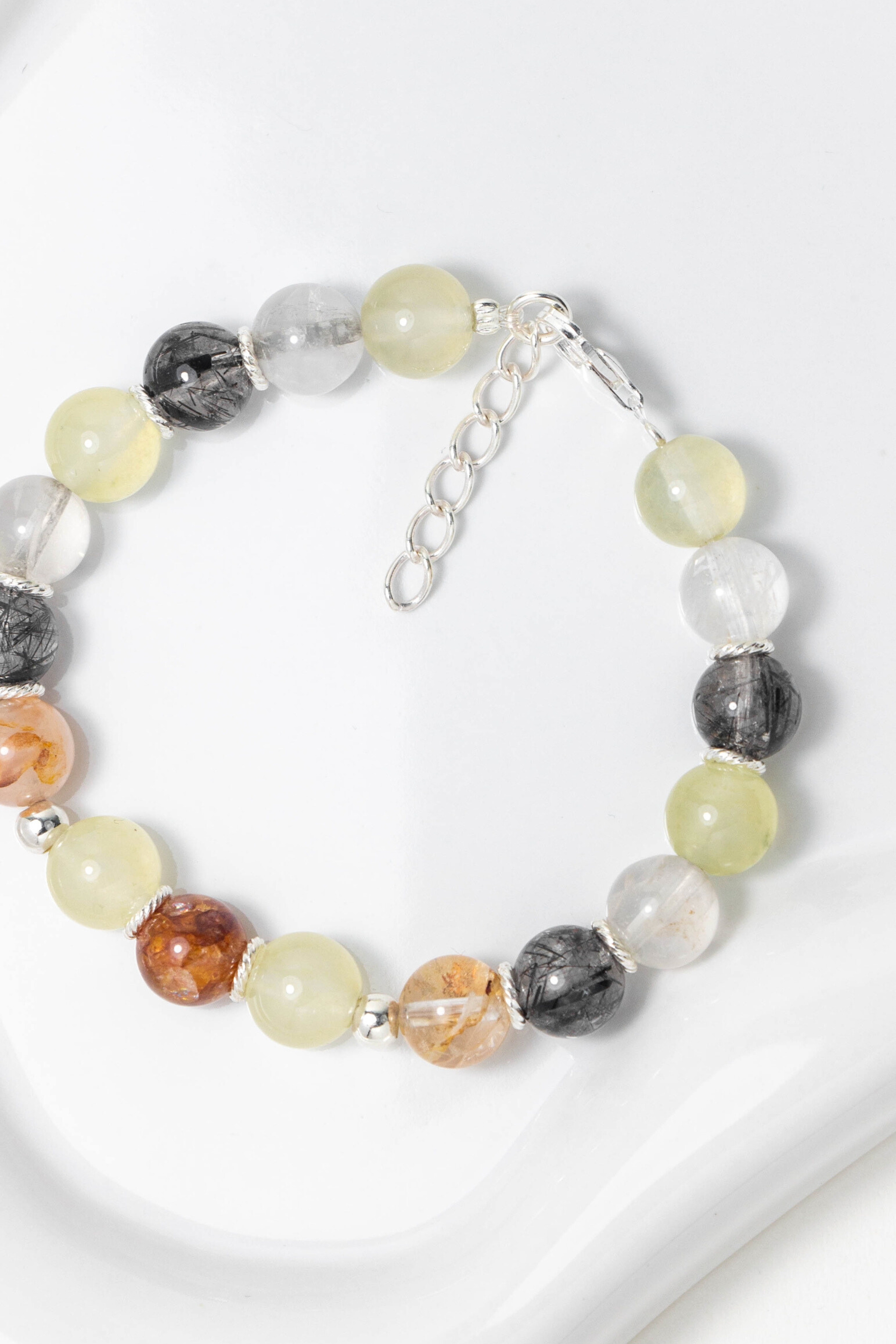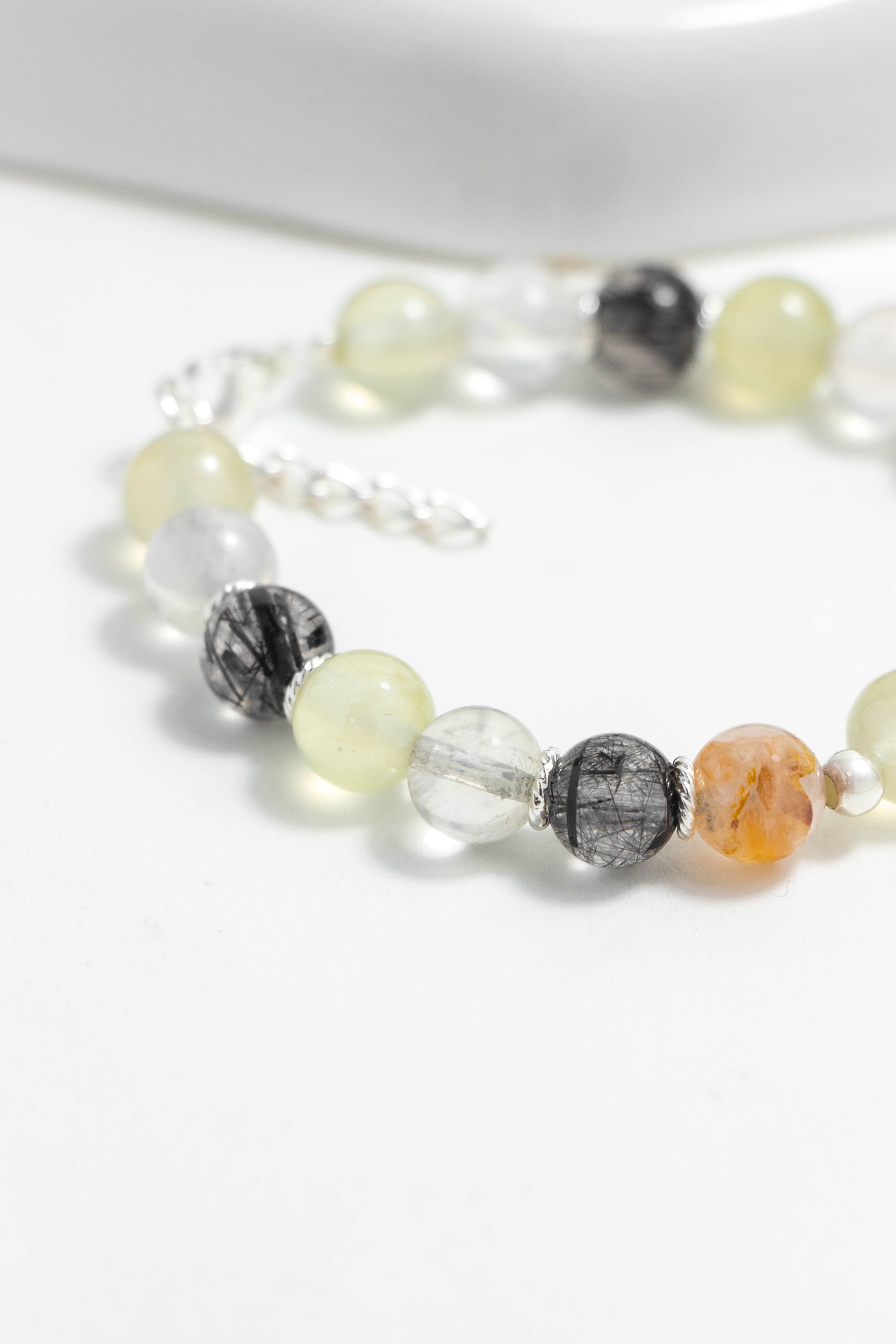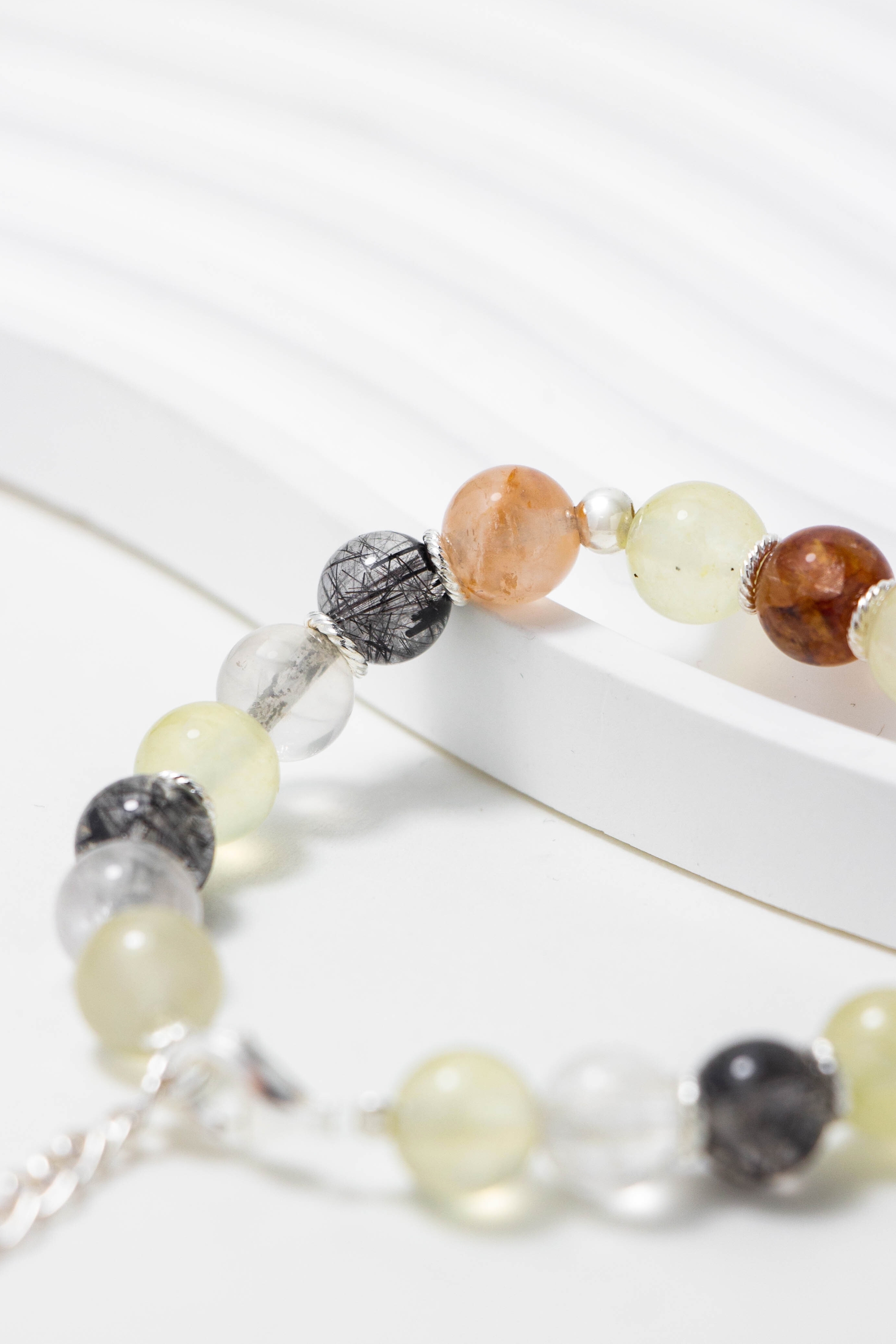 商品材質:黃膠花、馬來玉、黑髮晶、925純銀