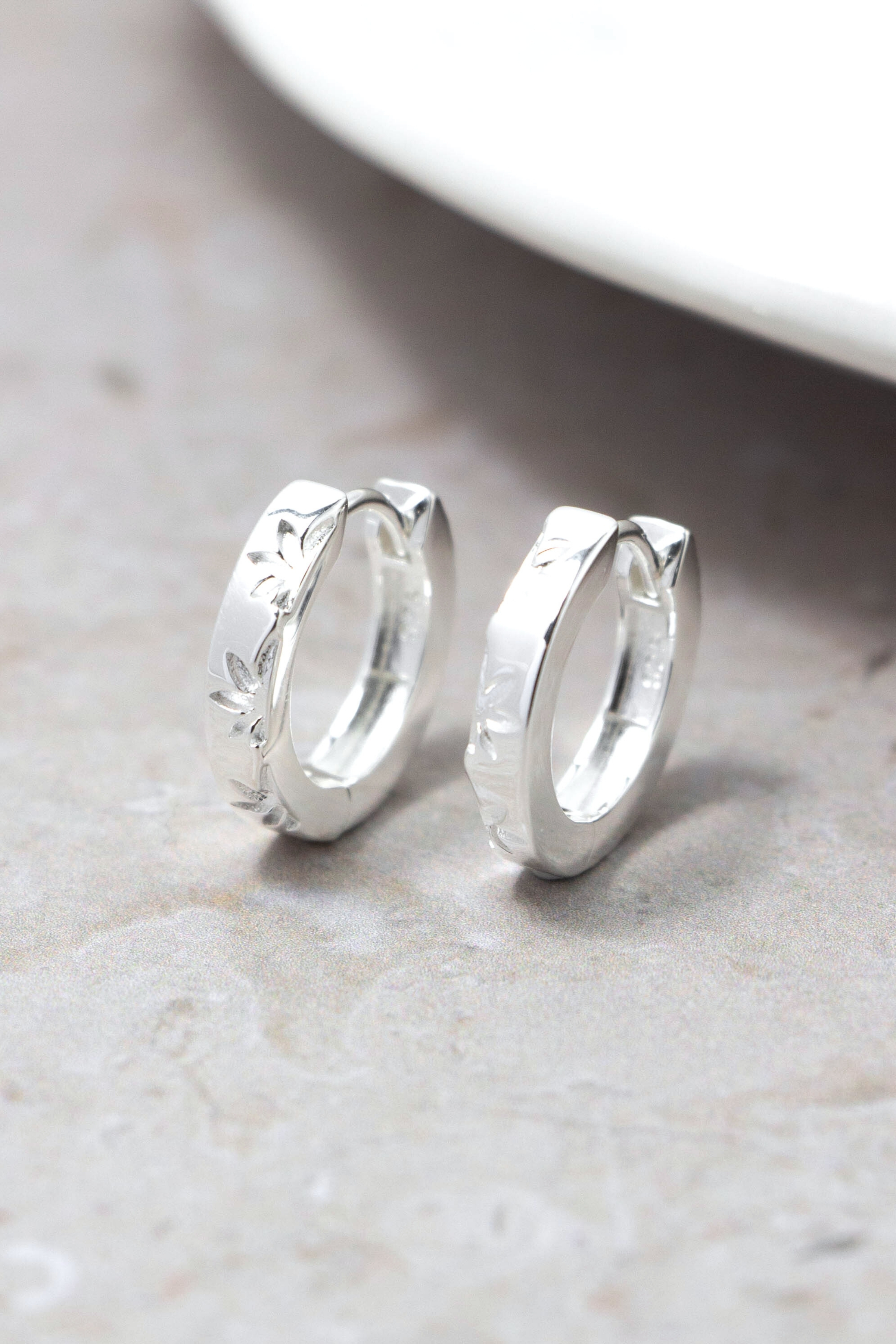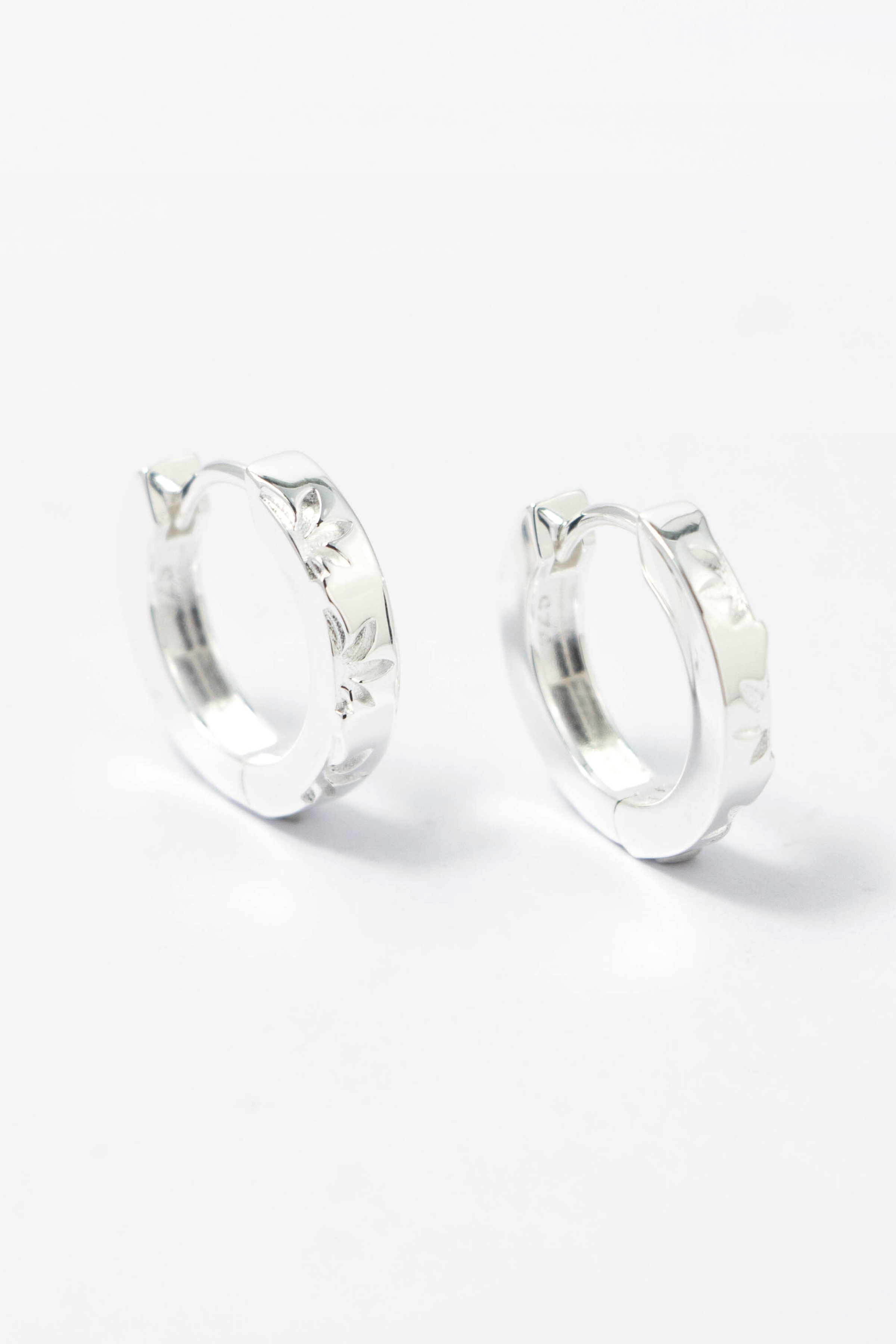 以簡約線圈為基礎,將葉片的輪廓低浮雕於銀面之上,
