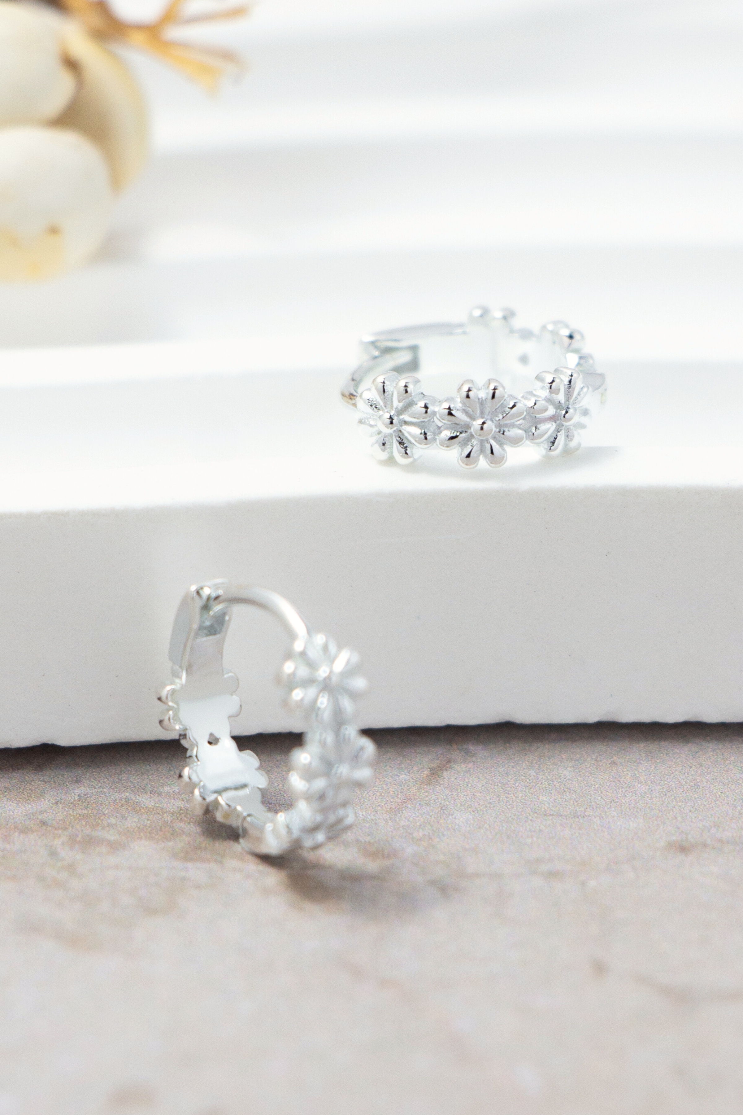 圓潤花瓣|柔和弧線勾勒花瓣,映出細膩銀色光澤