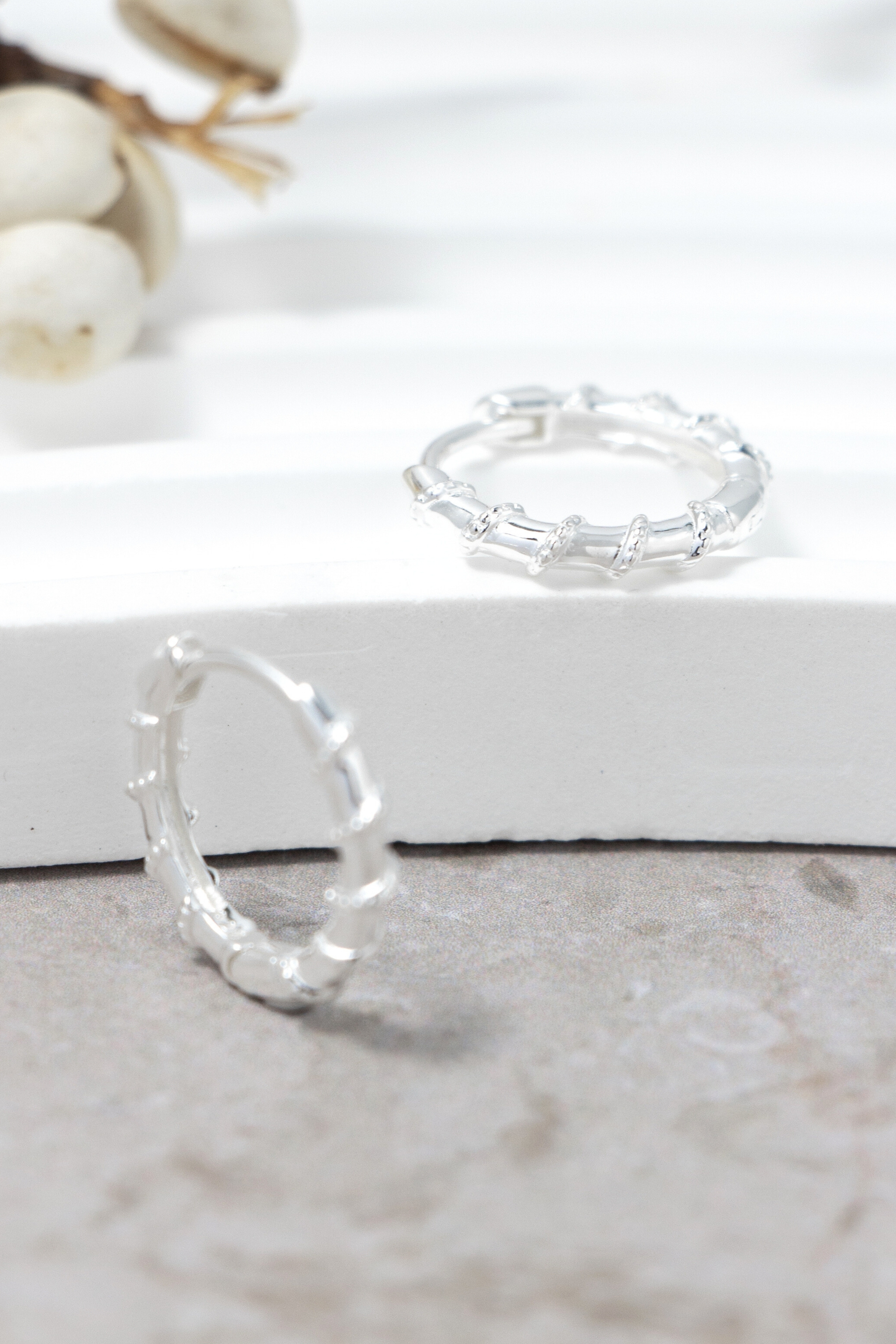 節奏式立體線條構成戒身,讓銀光在轉動間產生柔和陰影。